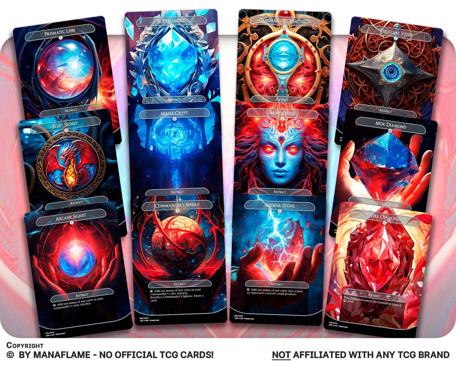 A 12-card artifact set for Izzet (Blue-Red) decks, featuring the most reliable mana rocks from classic staples like Sol Ring alternatives to guild-focused pieces such as Izzet Signet and Talisman of Creativity. Ideal for fast ramp and fixing in spellslinger or control strategies.