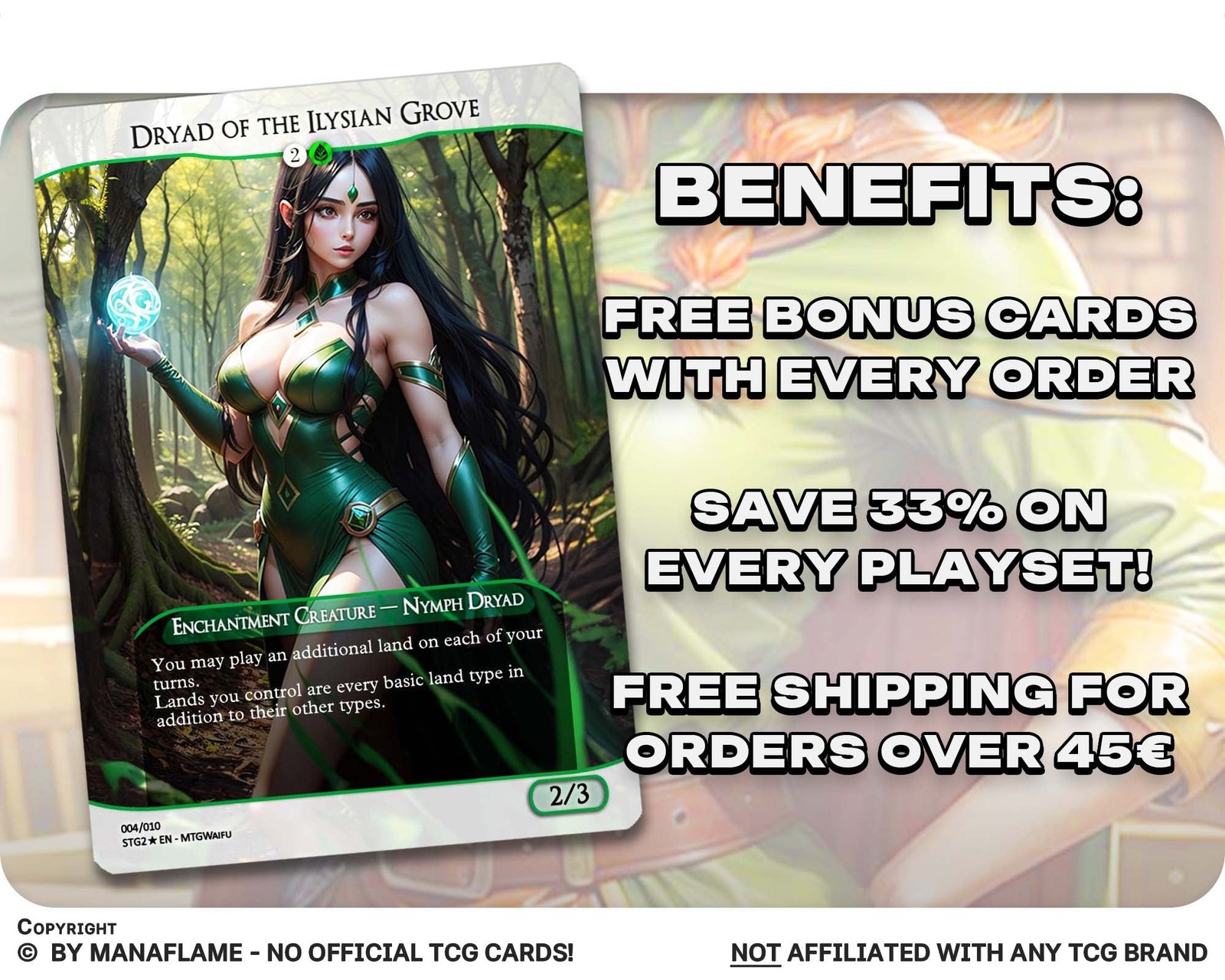 Explore the advantages: Our MTG proxies offer passionate players a wealth of benefits. Crafted with the utmost care, these proxy cards meticulously capture the essence of real MTG cards, creating a captivating and authentic gaming experience. The impressive full-art designs draw inspiration from the style of the latest MTG cards, ensuring that your collection stands out from the crowd. These enchanting cards not only enhance your gameplay but also serve as exquisite artworks that add a touch of sophistication to your MTG deck. You can rest assured that our proxy cards are made from the highest quality materials, ensuring durability and longevity.