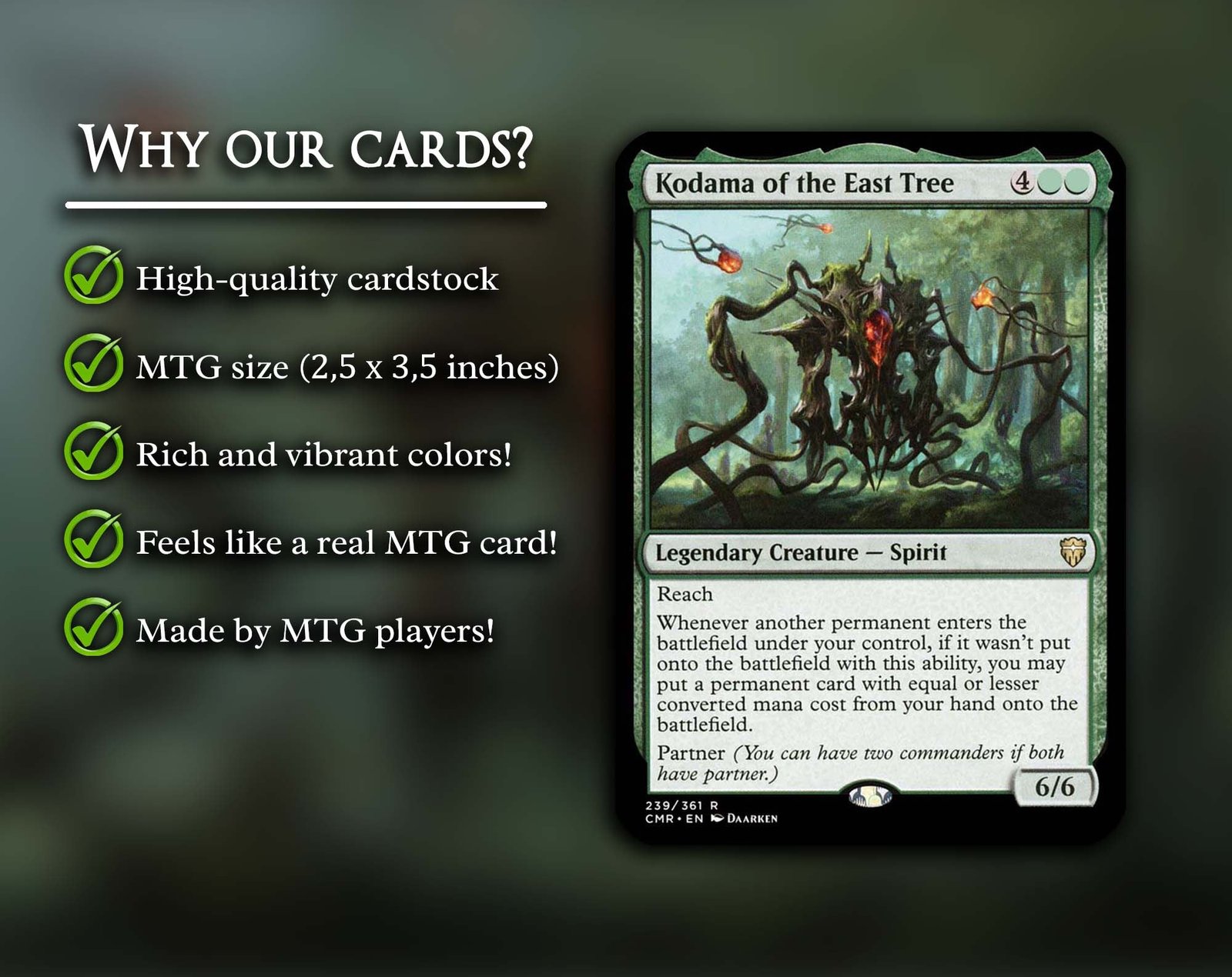 The power of proxies: Immerse yourself in the enticing world of our MTG proxies and unleash a new deck prowess. This captivating collection is ideal for enthusiastic Commander MTG enthusiasts as well as collectors. Proxy cards provide unparalleled protection for your valuable cards and add a unique touch to your playstyle and finesse. Experience the joy of creating custom decks and discover entirely new strategies with the magic of proxies.