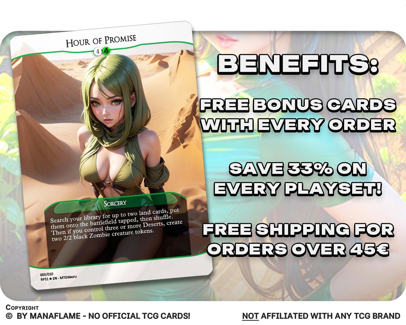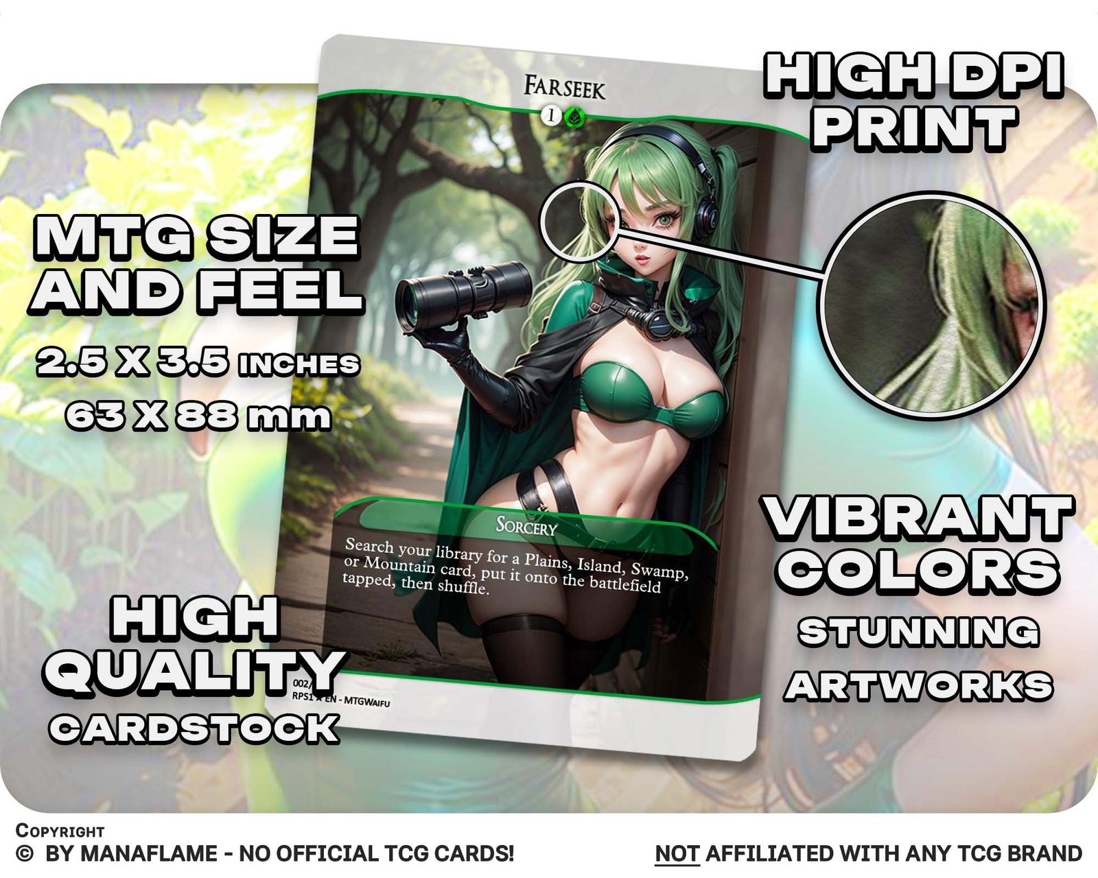 Explore the advantages: Our MTG proxies offer passionate players a wealth of benefits. Crafted with the utmost care, these proxy cards meticulously capture the essence of real MTG cards, creating a captivating and authentic gaming experience. The impressive full-art designs draw inspiration from the style of the latest MTG cards, ensuring that your collection stands out from the crowd. These enchanting cards not only enhance your gameplay but also serve as exquisite artworks that add a touch of sophistication to your MTG deck. You can rest assured that our proxy cards are made from the highest quality materials, ensuring durability and longevity.