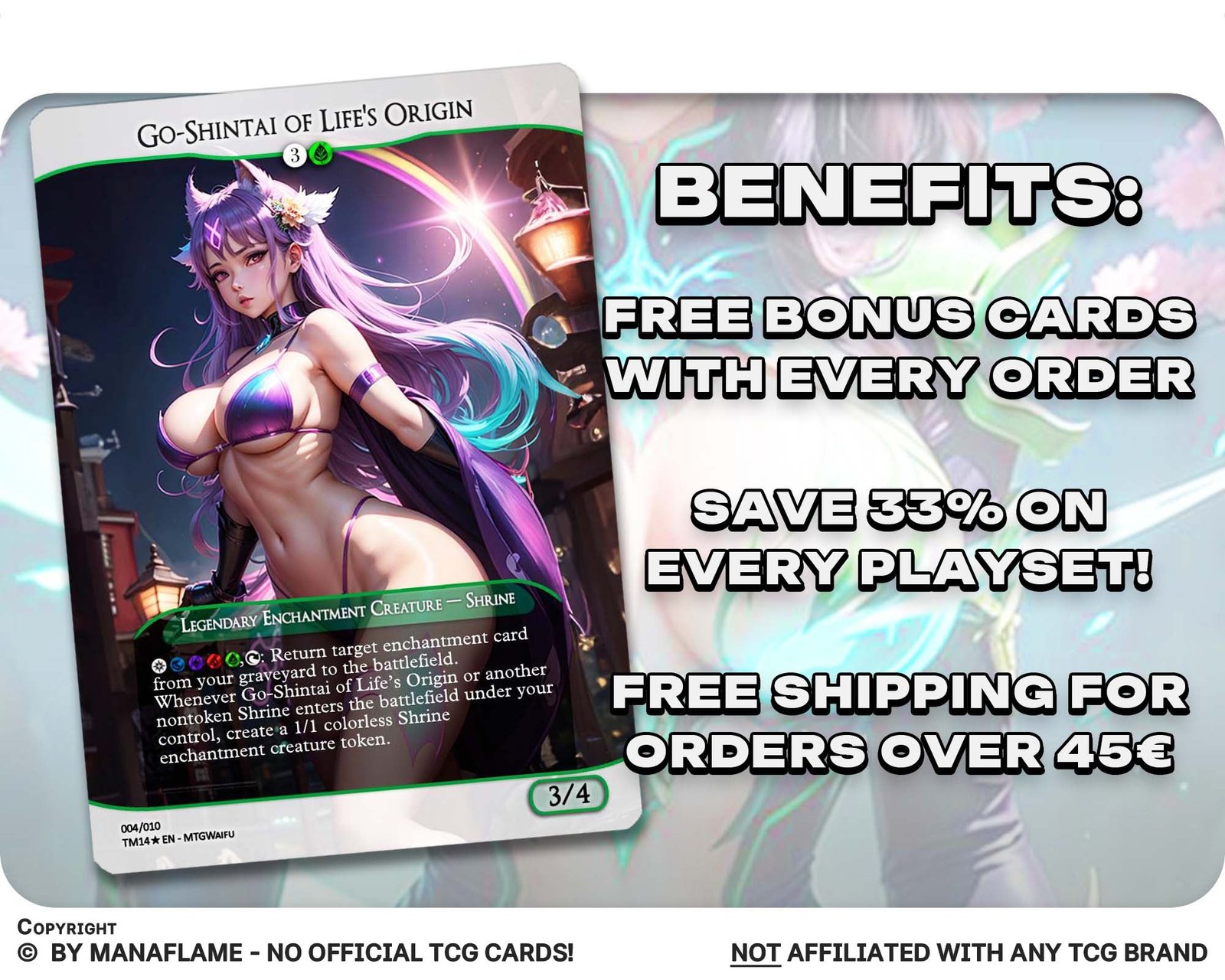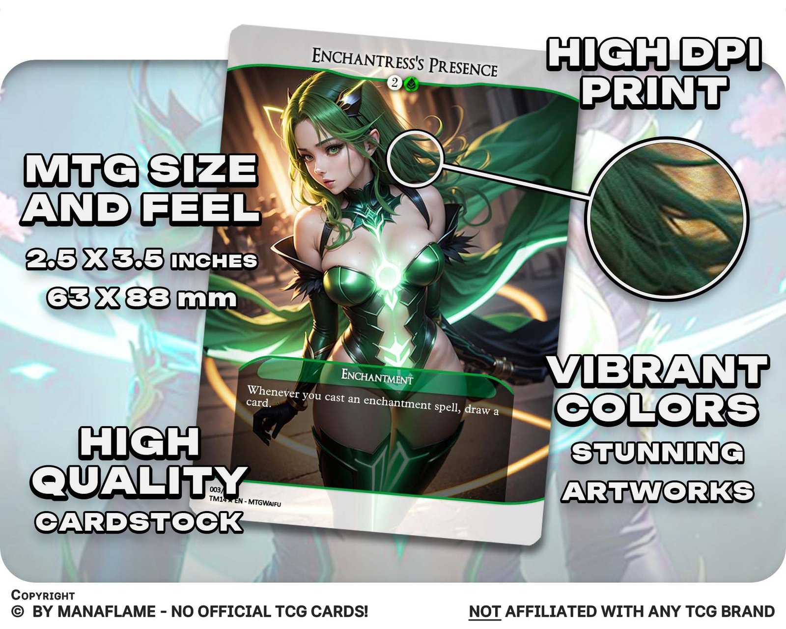 Explore the advantages: Our MTG proxies offer passionate players a wealth of benefits. Crafted with the utmost care, these proxy cards meticulously capture the essence of real MTG cards, creating a captivating and authentic gaming experience. The impressive full-art designs draw inspiration from the style of the latest MTG cards, ensuring that your collection stands out from the crowd. These enchanting cards not only enhance your gameplay but also serve as exquisite artworks that add a touch of sophistication to your MTG deck. You can rest assured that our proxy cards are made from the highest quality materials, ensuring durability and longevity.