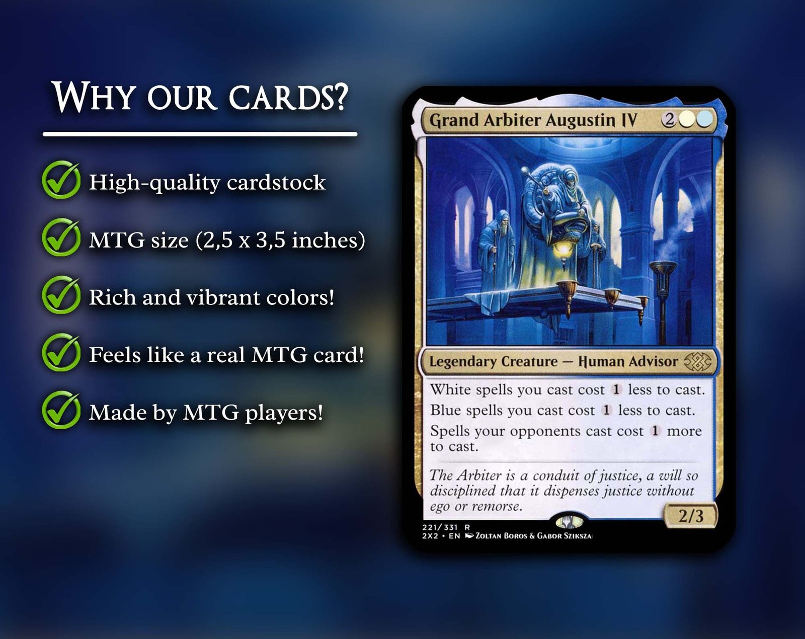 The power of proxies: Immerse yourself in the enticing world of our MTG proxies and unleash a new deck prowess. This captivating collection is ideal for enthusiastic Commander MTG enthusiasts as well as collectors. Proxy cards provide unparalleled protection for your valuable cards and add a unique touch to your playstyle and finesse. Experience the joy of creating custom decks and discover entirely new strategies with the magic of proxies.