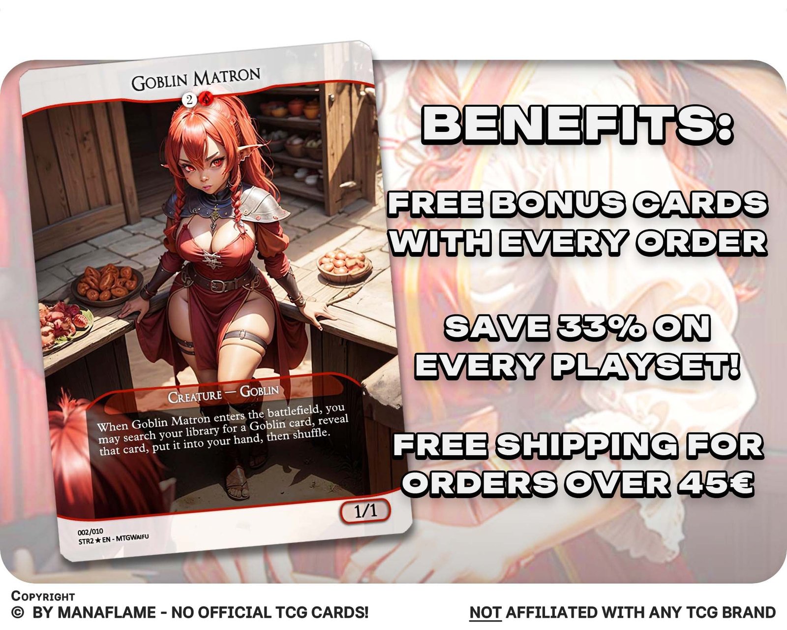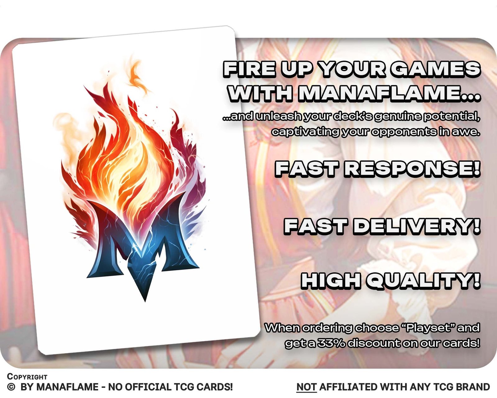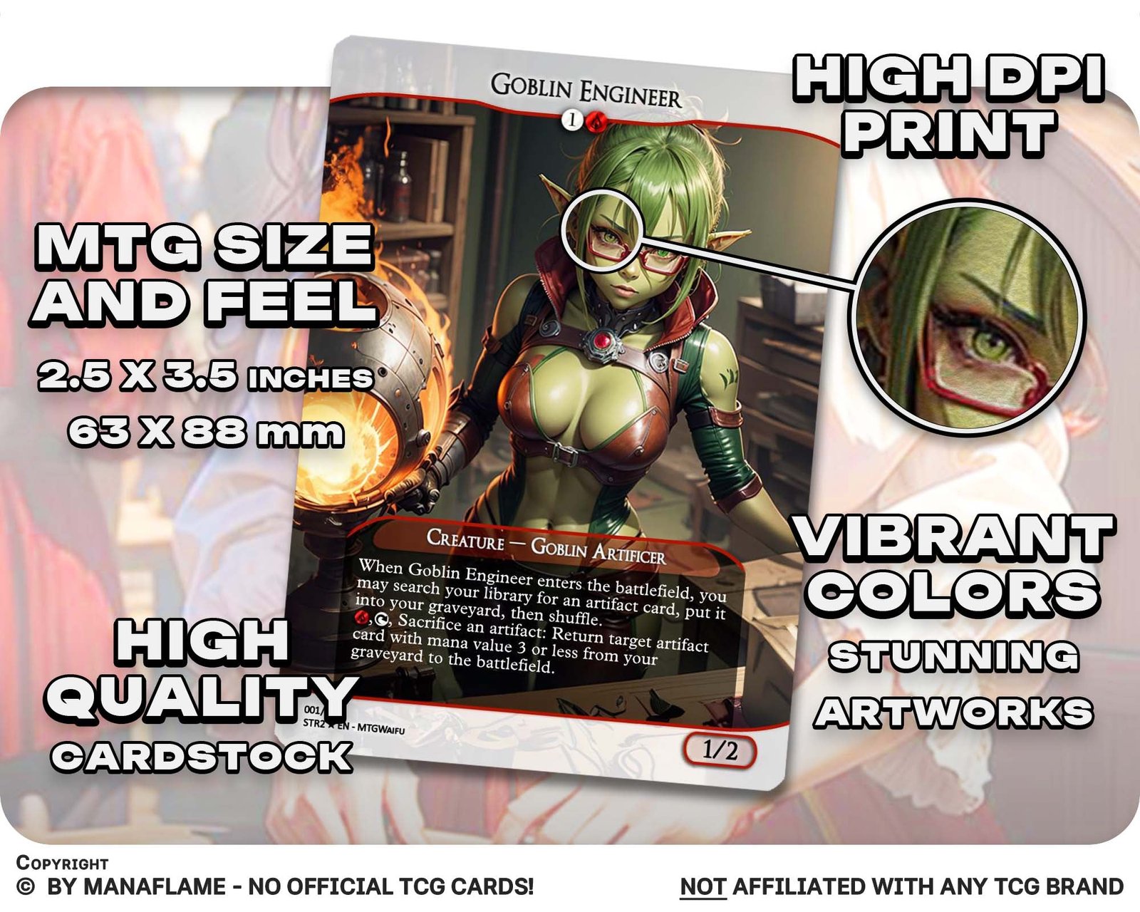 Explore the advantages: Our MTG proxies offer passionate players a wealth of benefits. Crafted with the utmost care, these proxy cards meticulously capture the essence of real MTG cards, creating a captivating and authentic gaming experience. The impressive full-art designs draw inspiration from the style of the latest MTG cards, ensuring that your collection stands out from the crowd. These enchanting cards not only enhance your gameplay but also serve as exquisite artworks that add a touch of sophistication to your MTG deck. You can rest assured that our proxy cards are made from the highest quality materials, ensuring durability and longevity.
