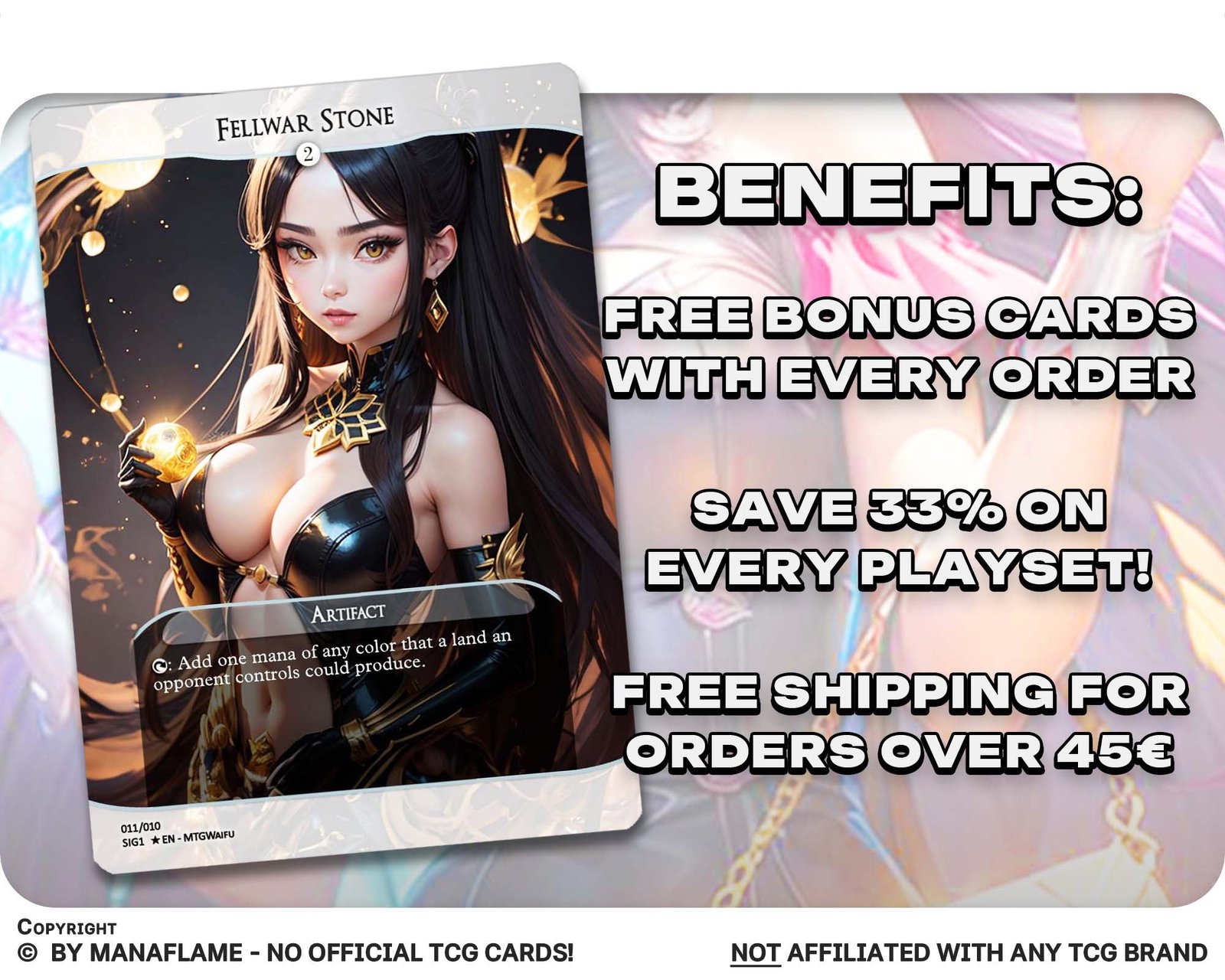 Explore the advantages: Our MTG proxies offer passionate players a wealth of benefits. Crafted with the utmost care, these proxy cards meticulously capture the essence of real MTG cards, creating a captivating and authentic gaming experience. The impressive full-art designs draw inspiration from the style of the latest MTG cards, ensuring that your collection stands out from the crowd. These enchanting cards not only enhance your gameplay but also serve as exquisite artworks that add a touch of sophistication to your MTG deck. You can rest assured that our proxy cards are made from the highest quality materials, ensuring durability and longevity.