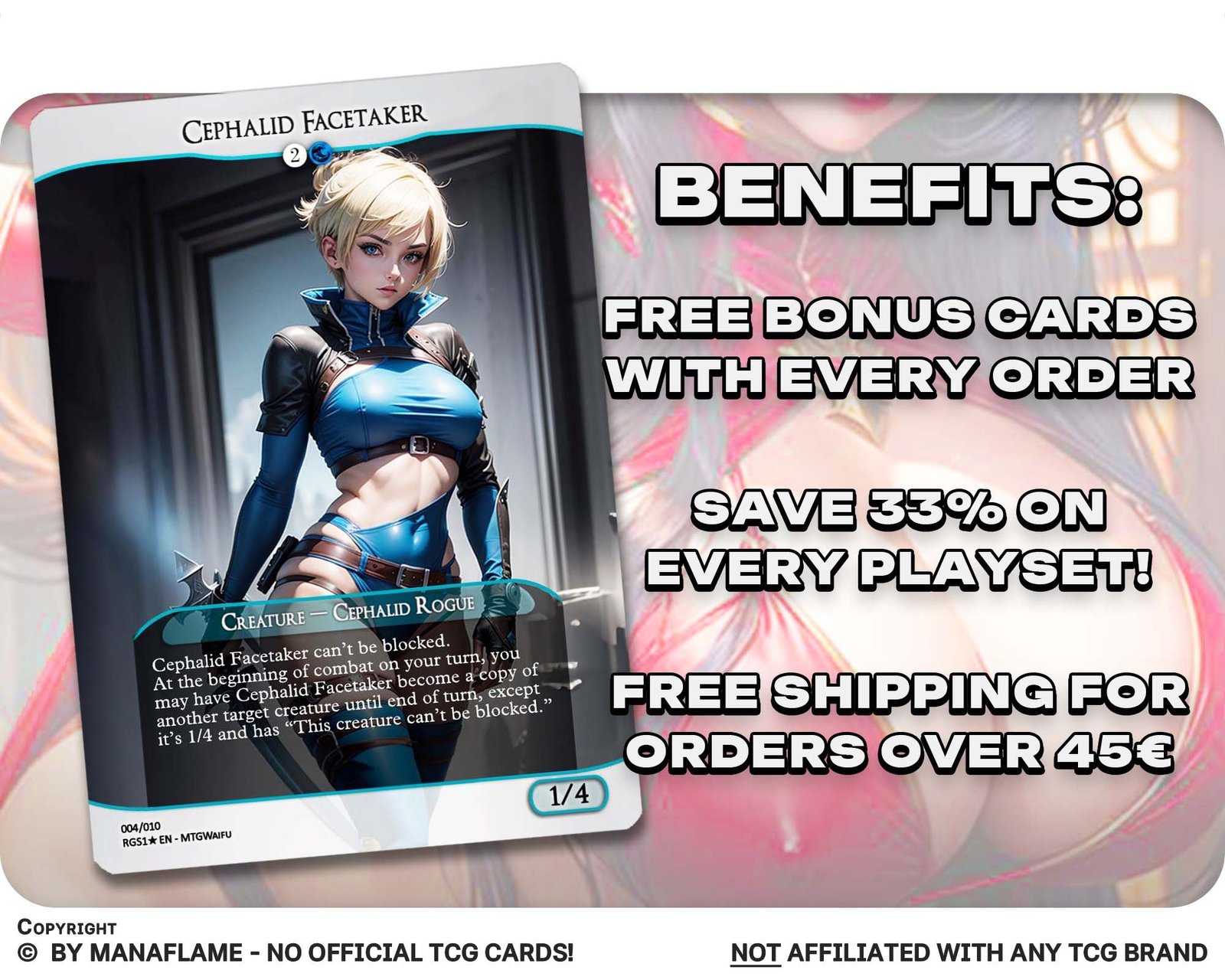 The power of proxies: Immerse yourself in the enticing world of our MTG proxies and unleash a new deck prowess. This captivating collection is ideal for enthusiastic Commander MTG enthusiasts as well as collectors. Proxy cards provide unparalleled protection for your valuable cards and add a unique touch to your playstyle and finesse. Experience the joy of creating custom decks and discover entirely new strategies with the magic of proxies.