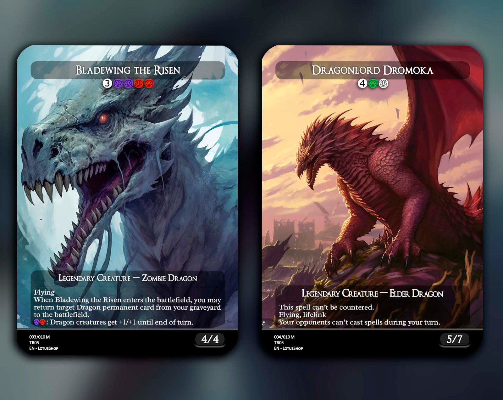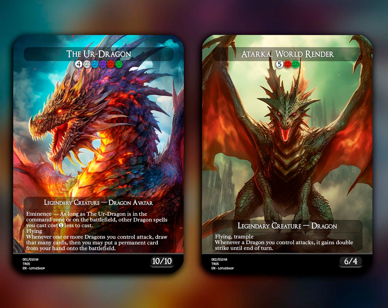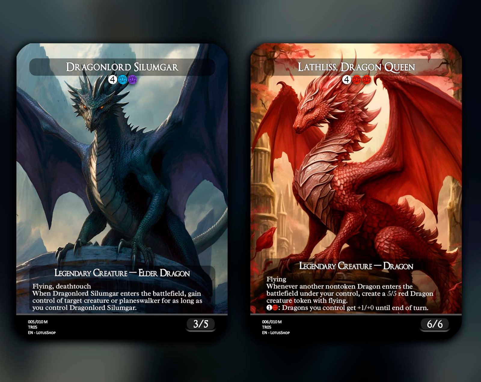 This 12-card set unleashes the might of dragons, featuring legendary commanders, powerful tribal support, and iconic fire-breathing threats. Perfect for dragon enthusiasts who want to dominate the skies and overwhelm their opponents with raw power.