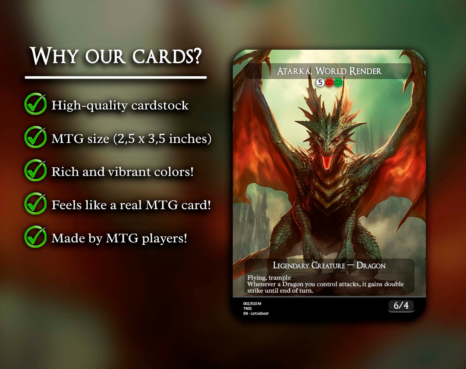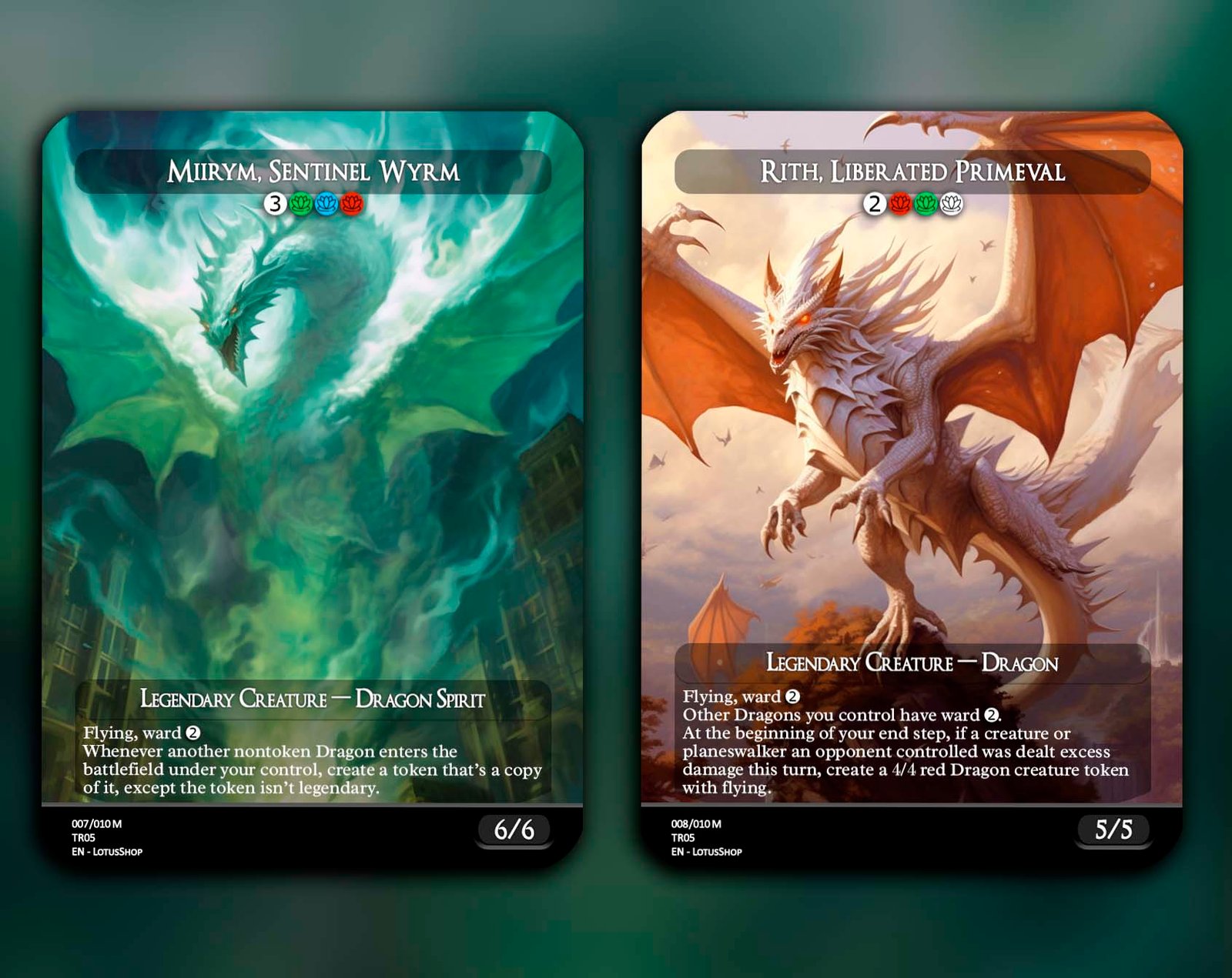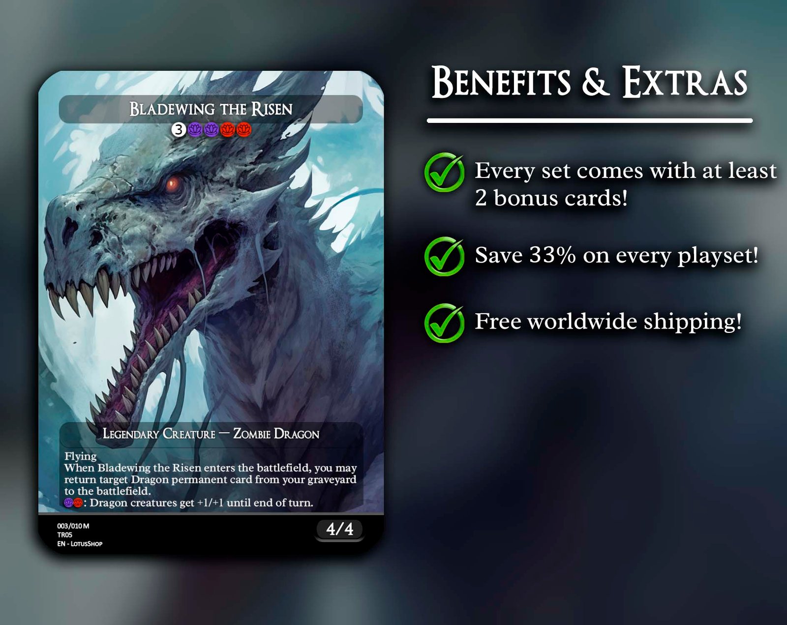 This 12-card set unleashes the might of dragons, featuring legendary commanders, powerful tribal support, and iconic fire-breathing threats. Perfect for dragon enthusiasts who want to dominate the skies and overwhelm their opponents with raw power.