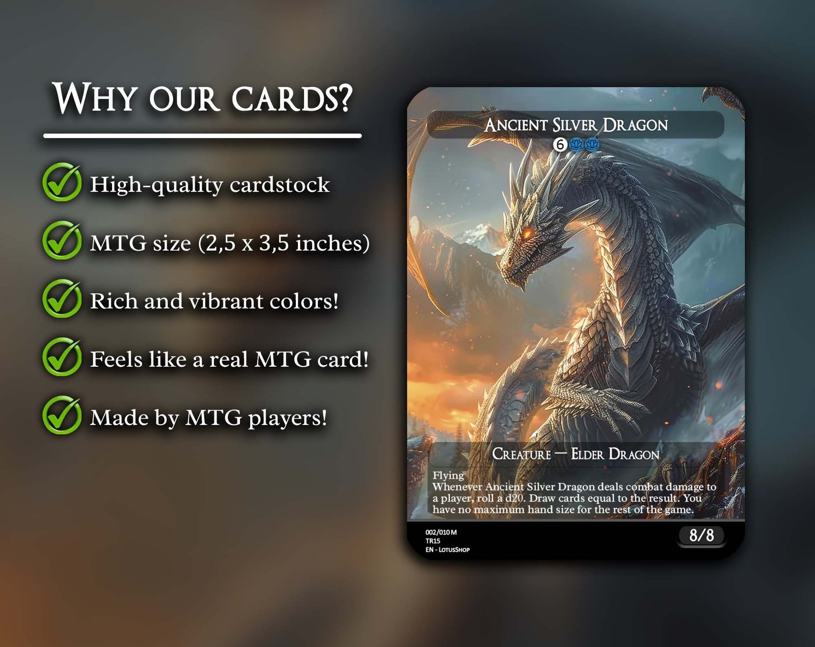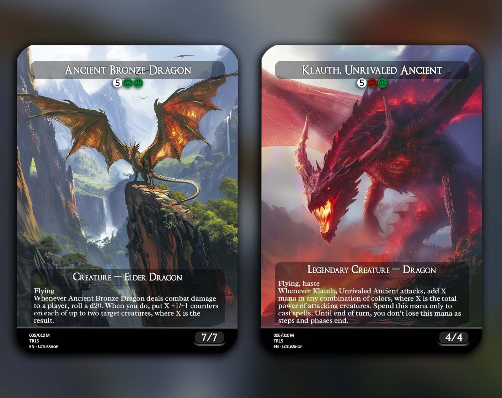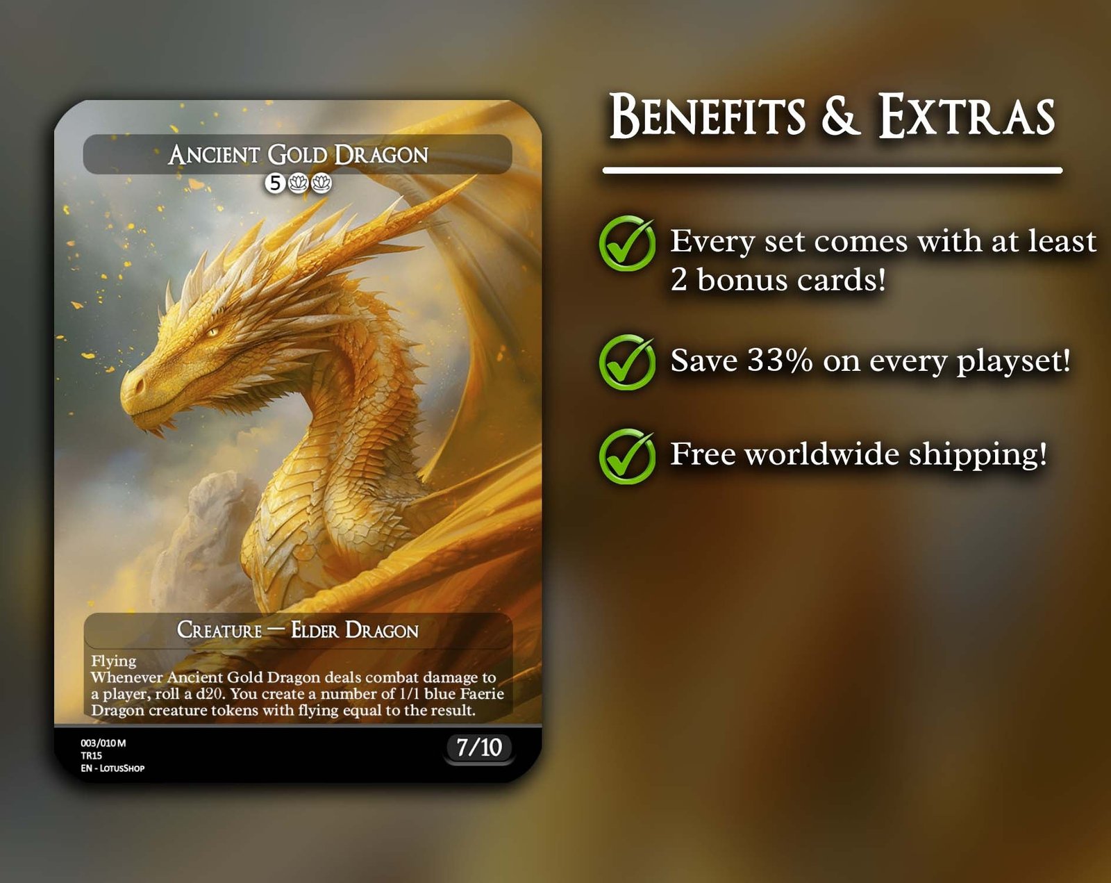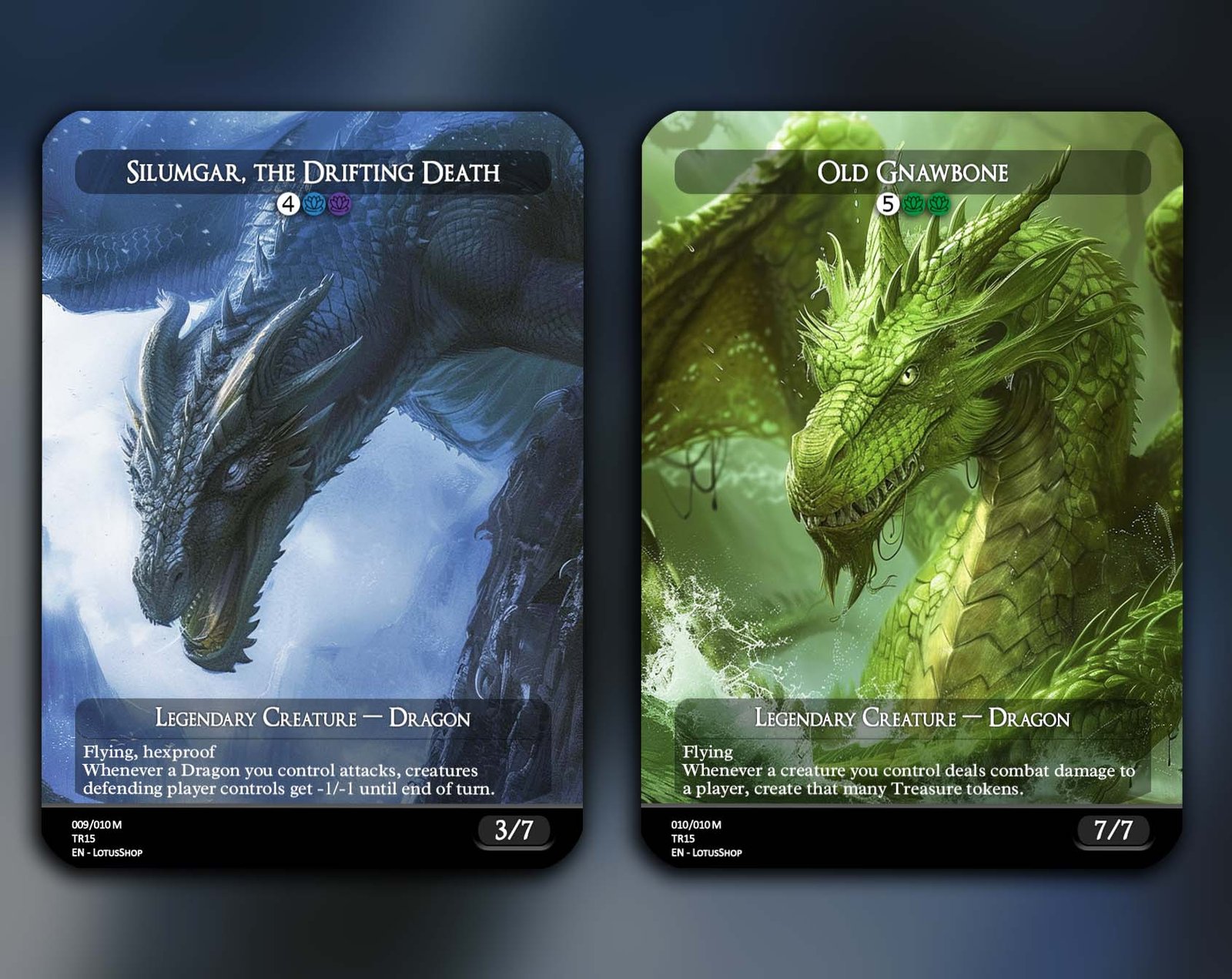 A 12-card powerhouse collection of ancient and legendary dragons, perfect for unleashing draconic fury in Commander and tribal decks. This set includes the full cycle of Ancient Dragons, along with iconic legends like Tiamat and Old Gnawbone, bringing treasure, power, and dominance to your battlefield.
