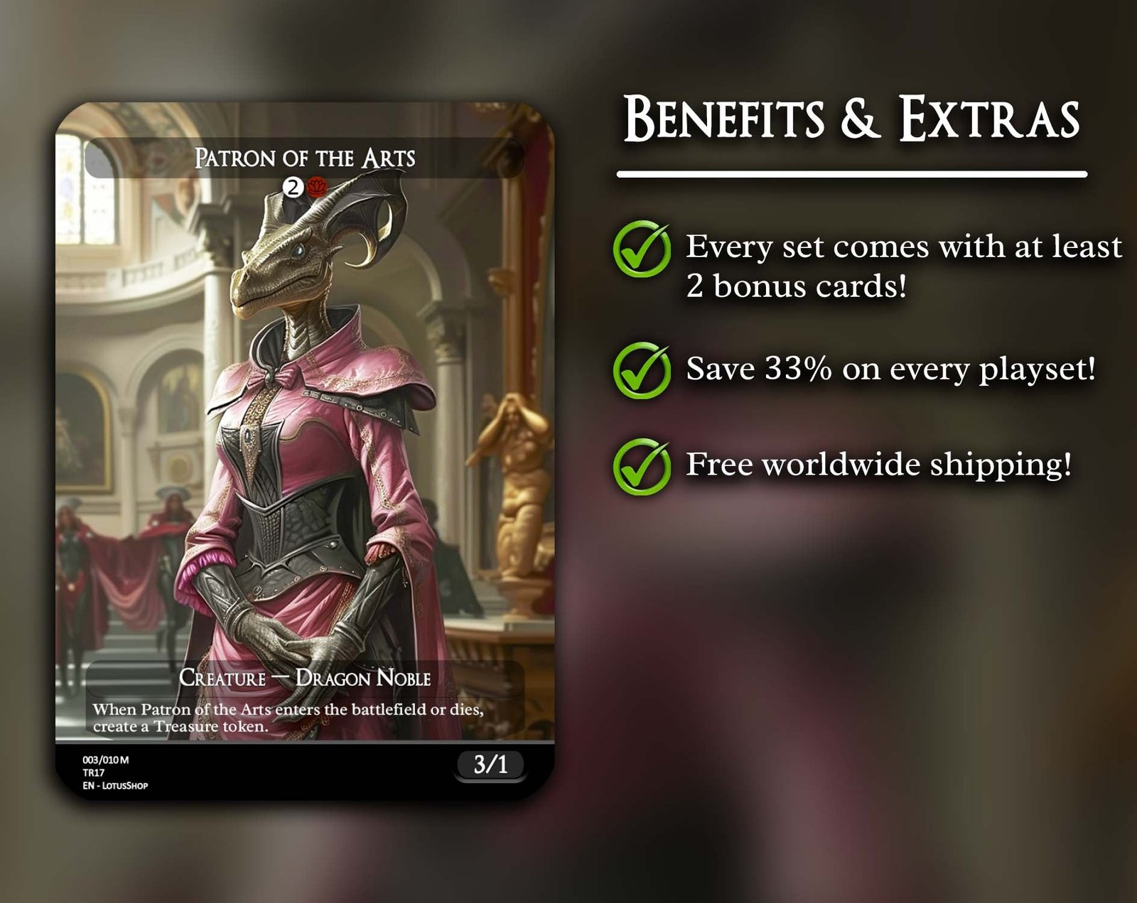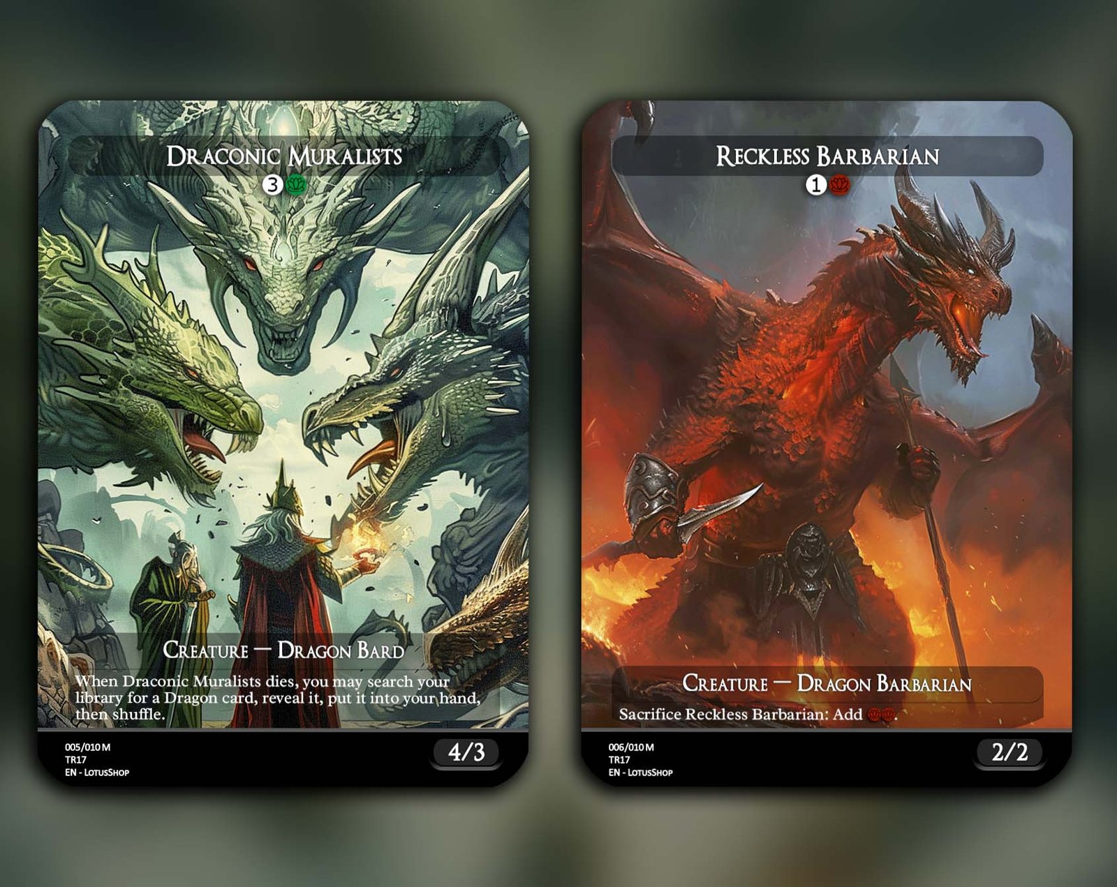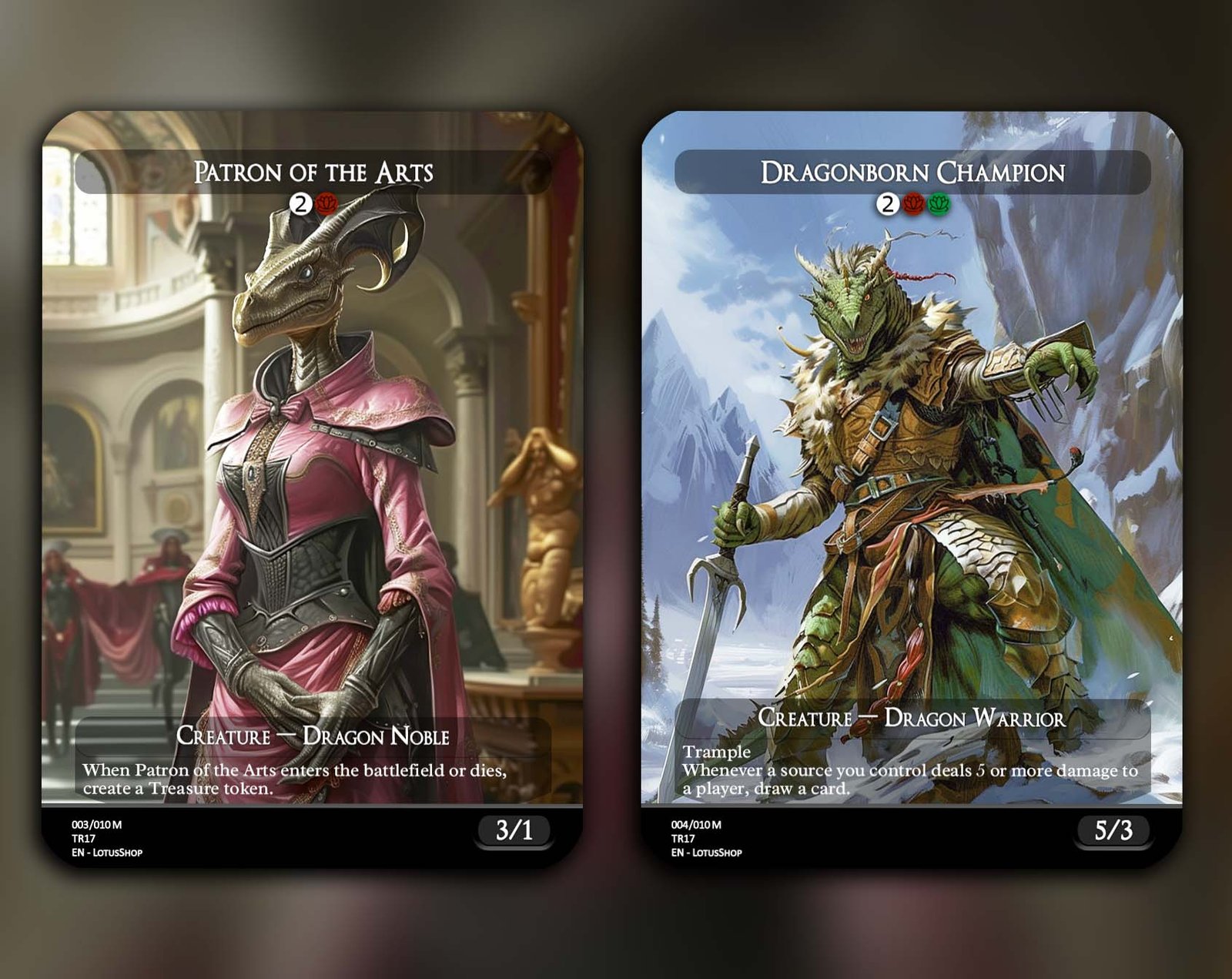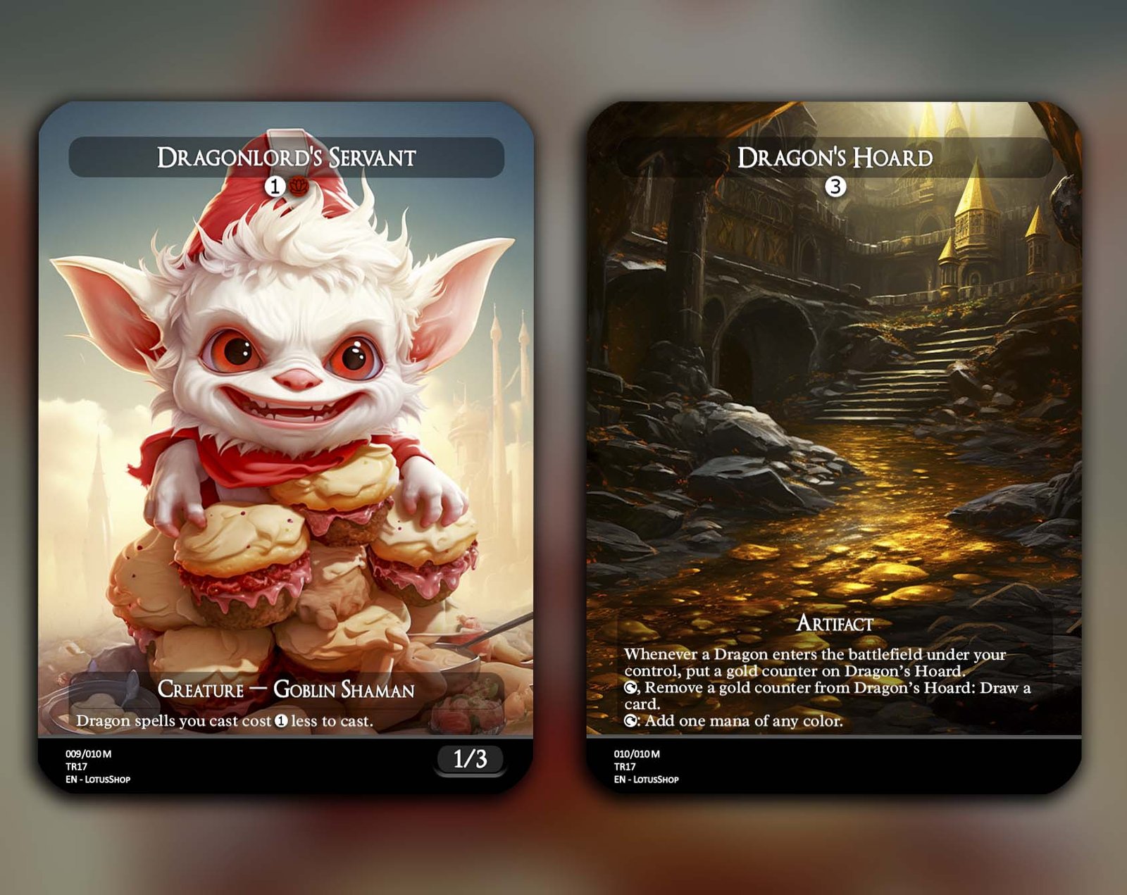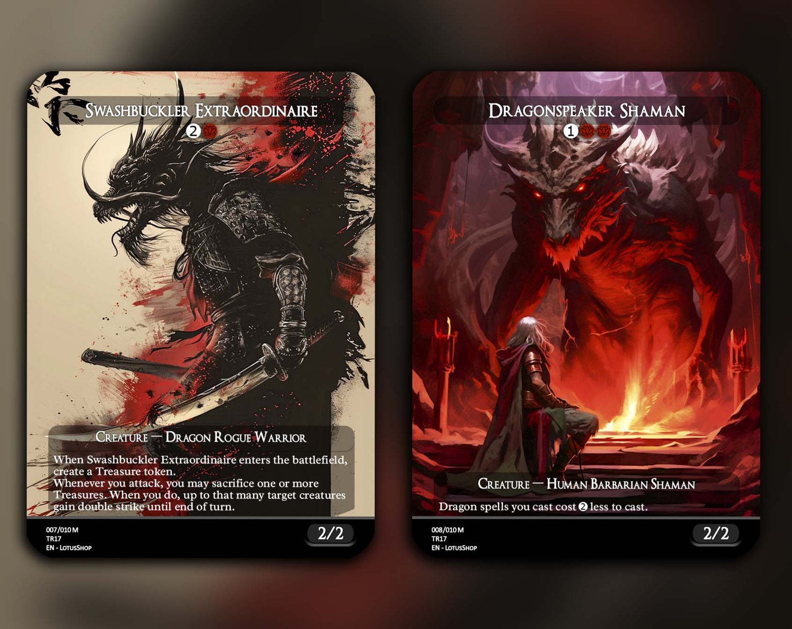 A 12-card collection focused on ramp, cost reduction, and support for Dragon decks — perfect for accelerating into massive threats and fueling Dragon synergies. From mana accelerators like Dragonlord’s Servant and Dragonspeaker Shaman to flavorful planeswalkers like Sarkhan, this set empowers your Dragon tribal builds from every angle.