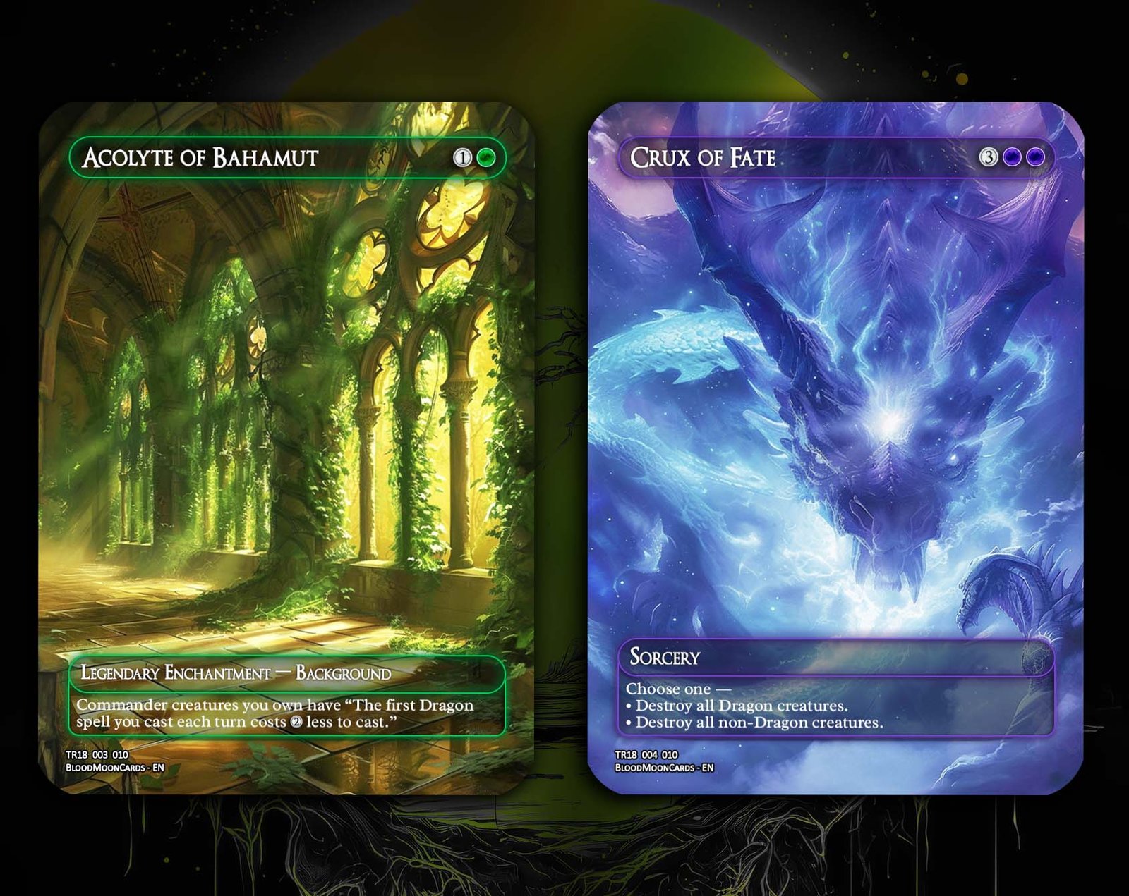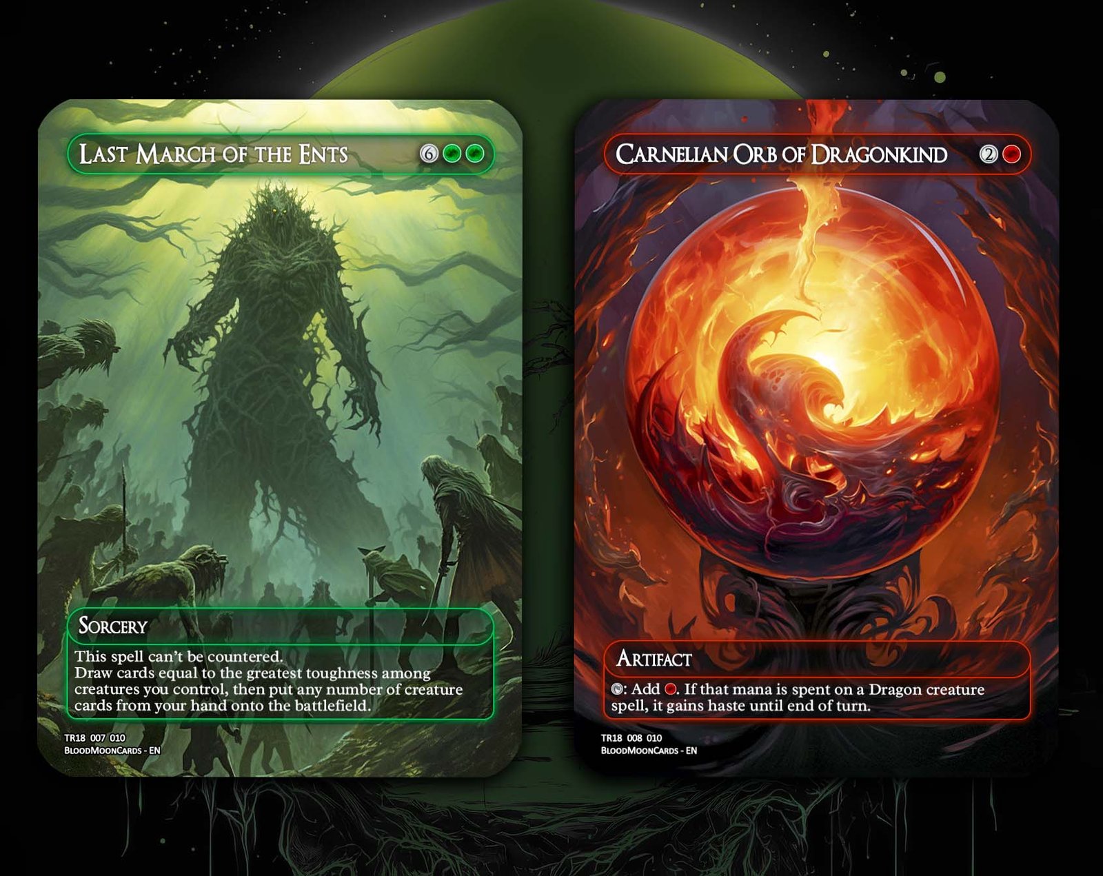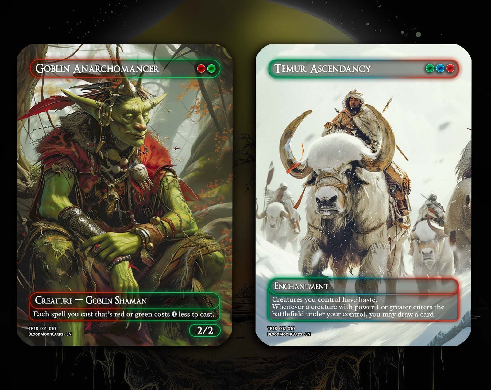 A 12-card set focusing on the support, ramp, and synergies that empower Dragon decks to reach their full potential. From mana accelerators like Goblin Anarchomancer and the Dragonkind Orbs to draw engines such as Temur Ascendancy and Garruk’s Uprising, this set provides the backbone every Dragon commander craves. With board wipes, legendary artifacts, and scaling enchantments, your Dragons will enter the battlefield faster, stronger, and more overwhelming than ever.