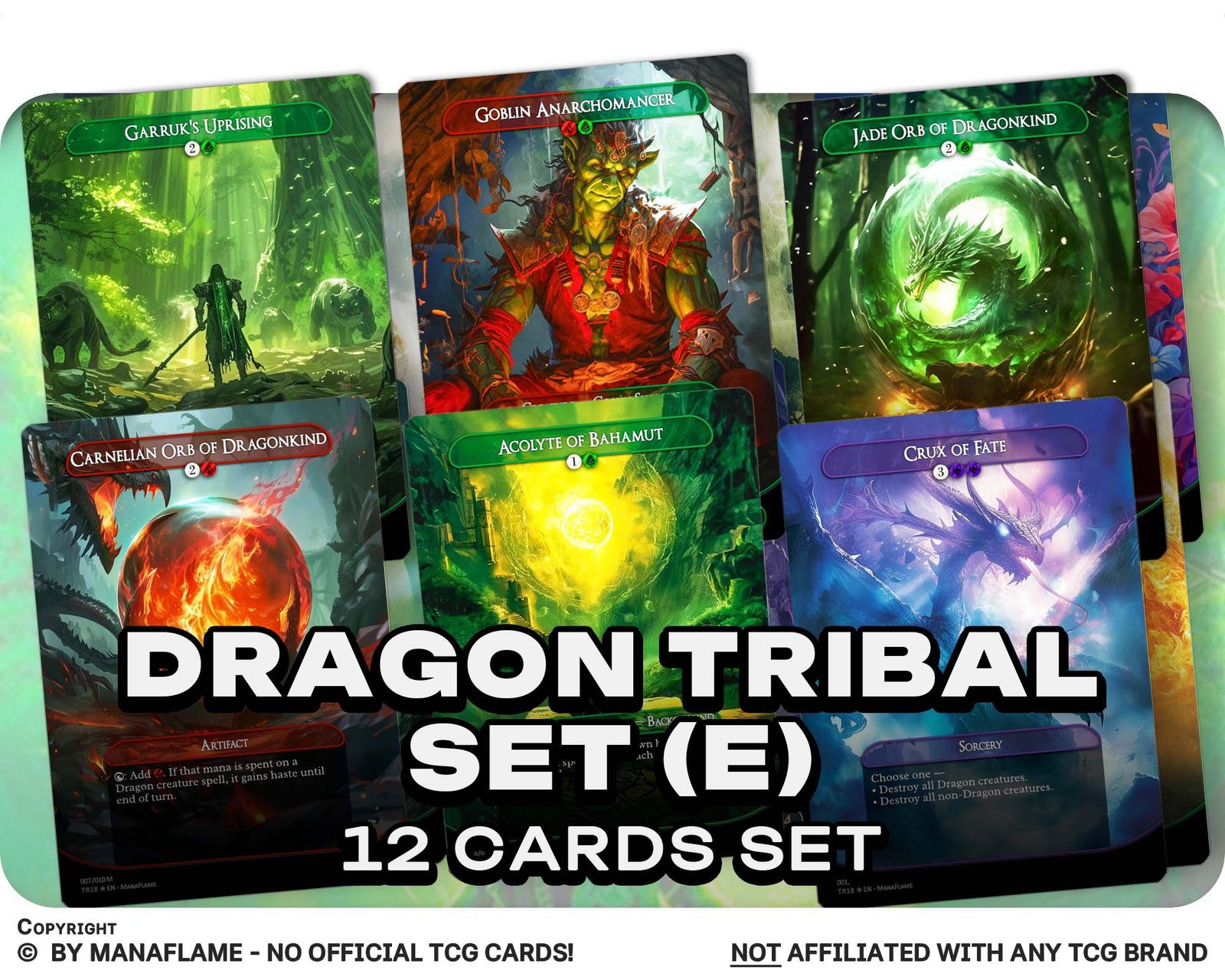 This set focuses on ramp, cost reduction, and card advantage — all essential for fueling massive dragon plays. With powerful enchantments like Temur Ascendancy and The Great Henge, plus support cards such as Goblin Anarchomancer and Orbs of Dragonkind, you’ll have the tools to keep your dragons flying high while maintaining card flow and mana efficiency.