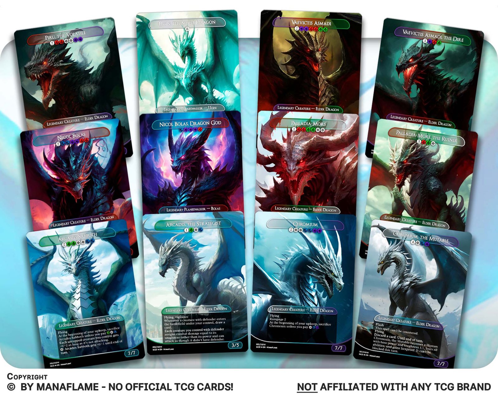This 12-card set brings the might of Magic’s legendary Elder Dragons to life. From the original cycle that inspired Commander to their modern incarnations, these cards embody raw power, ancient wisdom, and iconic design. A must-have for dragon enthusiasts, EDH players, and collectors who want the full saga of these timeless legends.