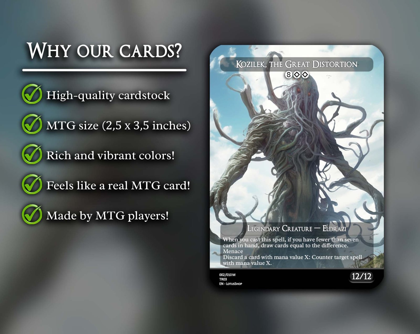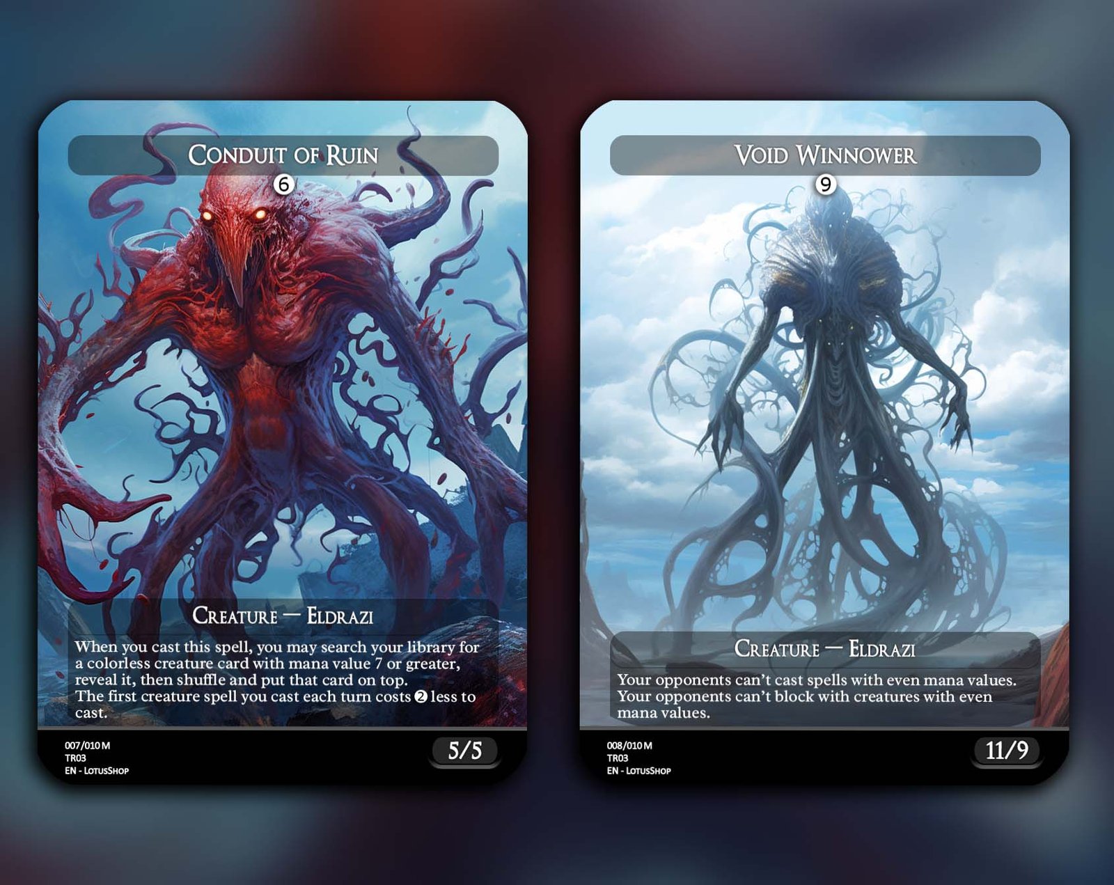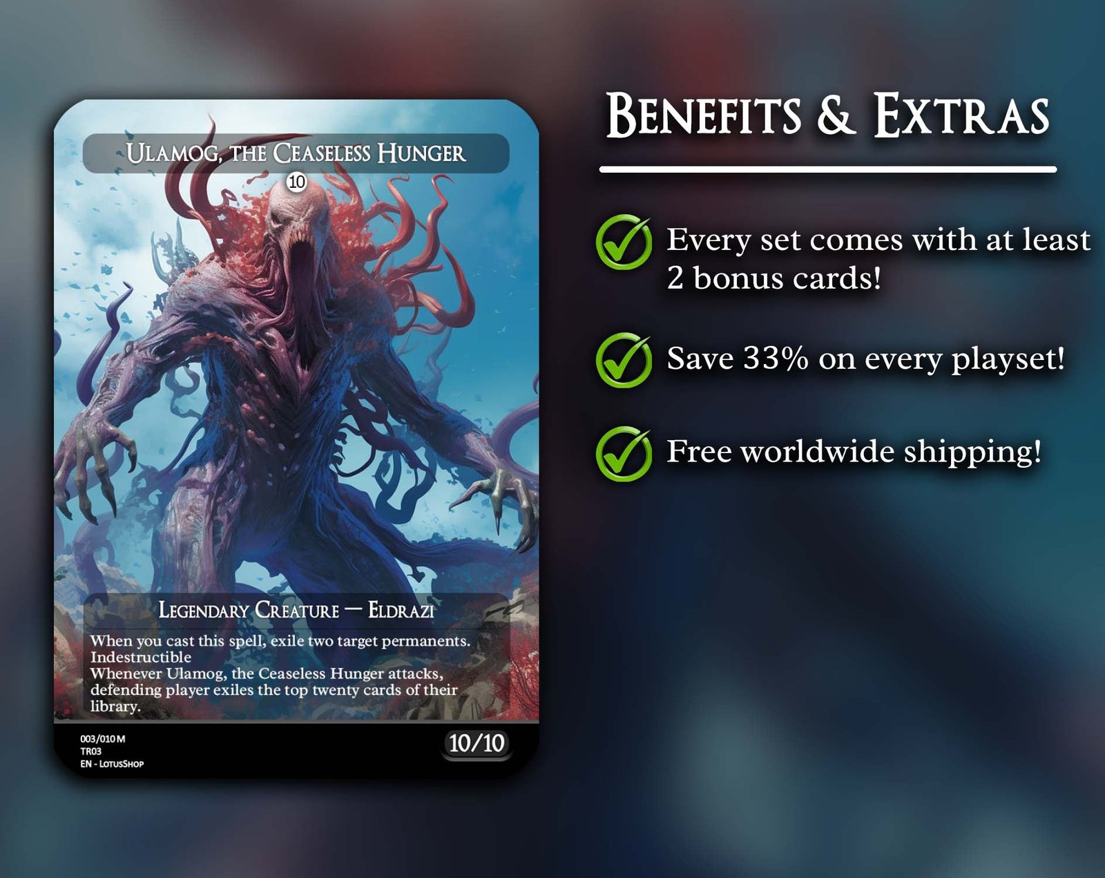 A 12-card powerhouse set that brings the terrifying might of the Eldrazi straight to your battlefield. Packed with iconic titans, annihilator threats, and support spells, this bundle is perfect for players who want to dominate games with colorless monstrosities and bend reality itself.