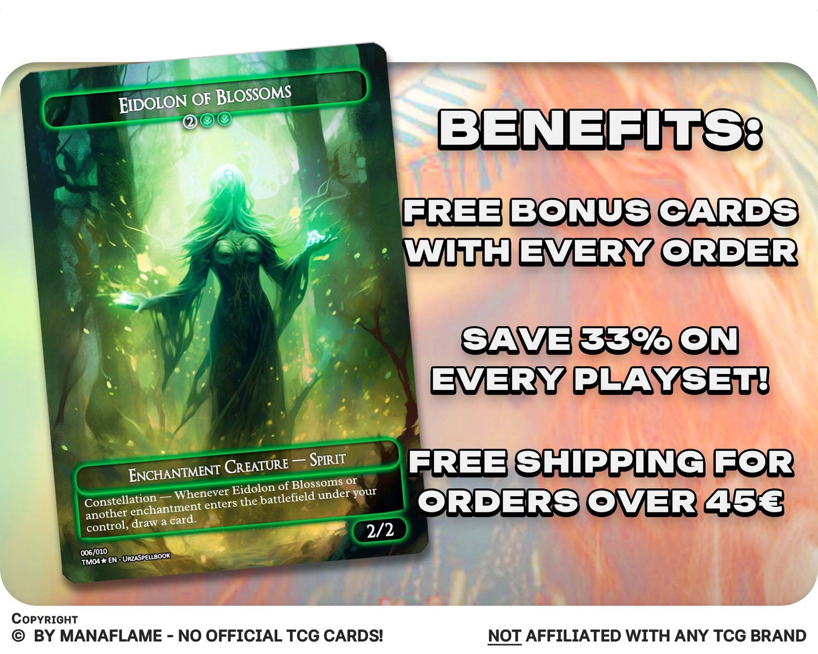 A 12-card collection dedicated to the Enchantress archetype — featuring legendary commanders, powerful draw engines, and key support pieces that turn enchantments into overwhelming advantage. Perfect for proxy enthusiasts who want to experience the elegance and inevitability of enchantment-based strategies.