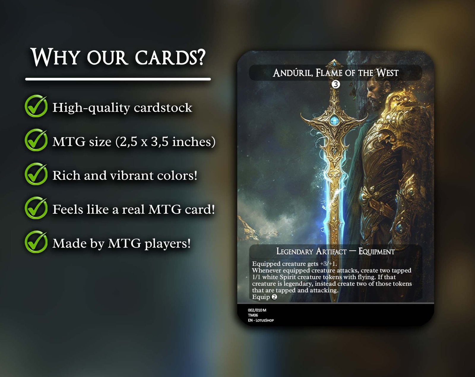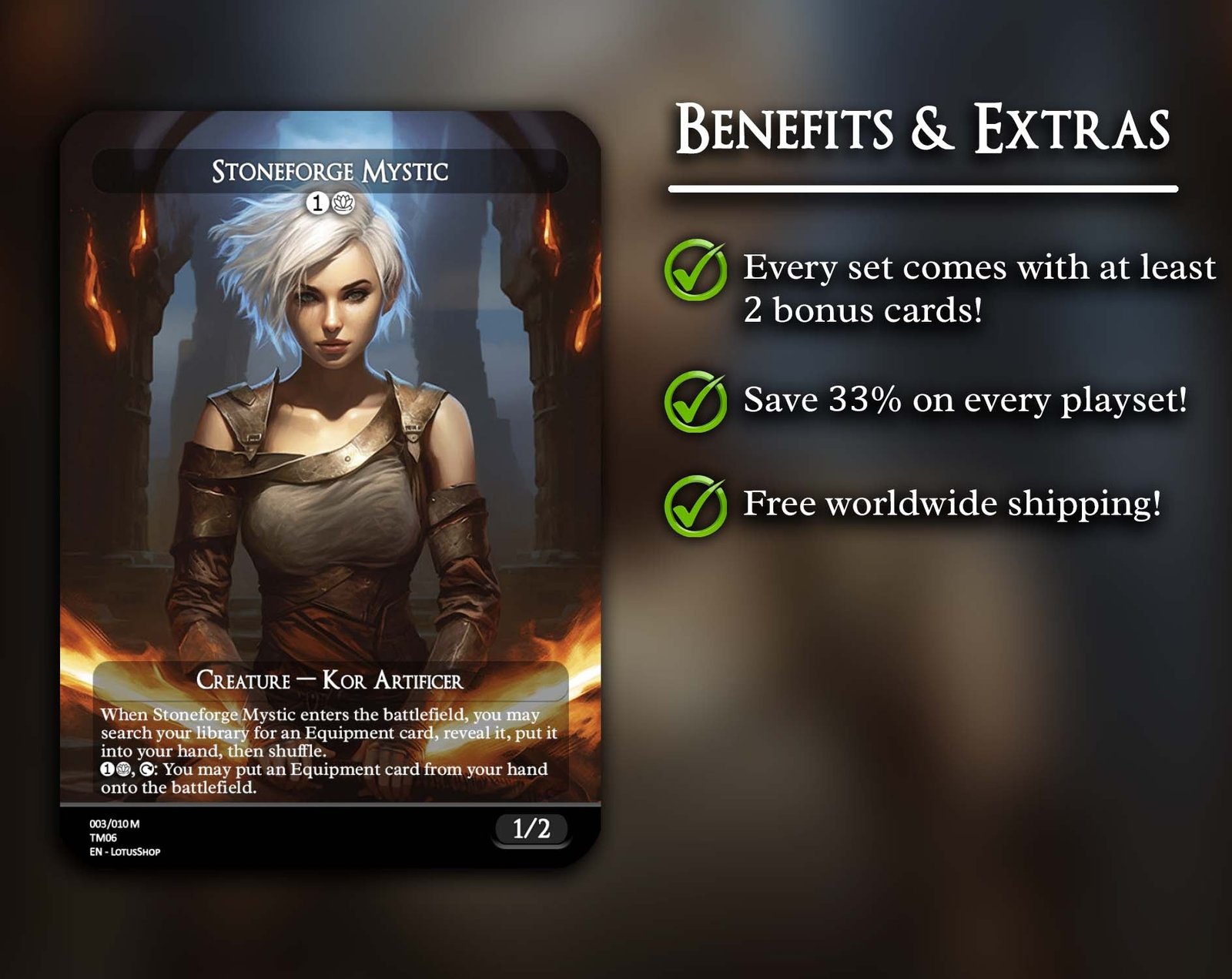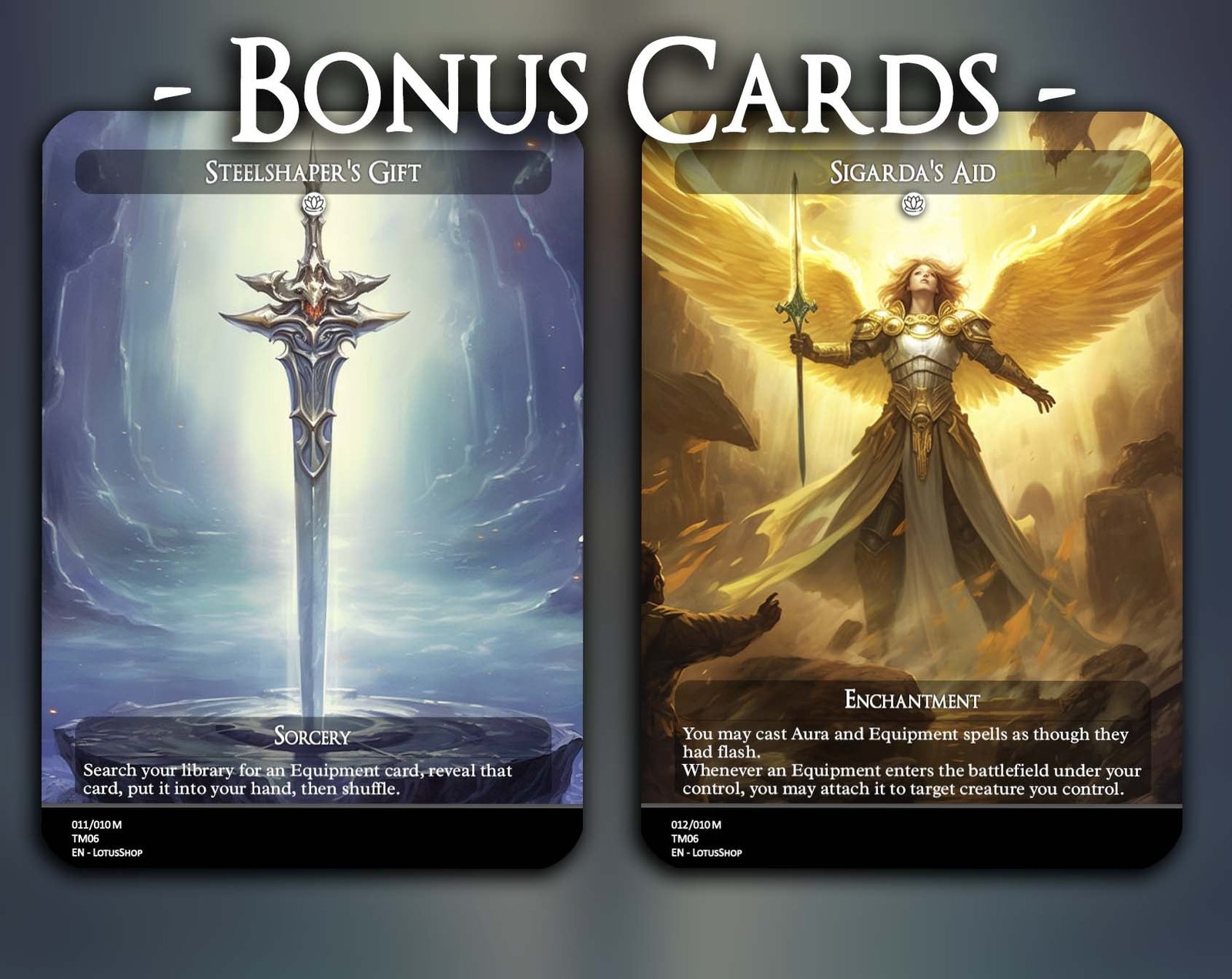 A 12-card collection built around Equipment synergies, featuring the best tutors, support creatures, and iconic gear that turn any creature into a true powerhouse. From value engines to legendary weapons, this set has everything you need for a battle-ready Equipment deck.