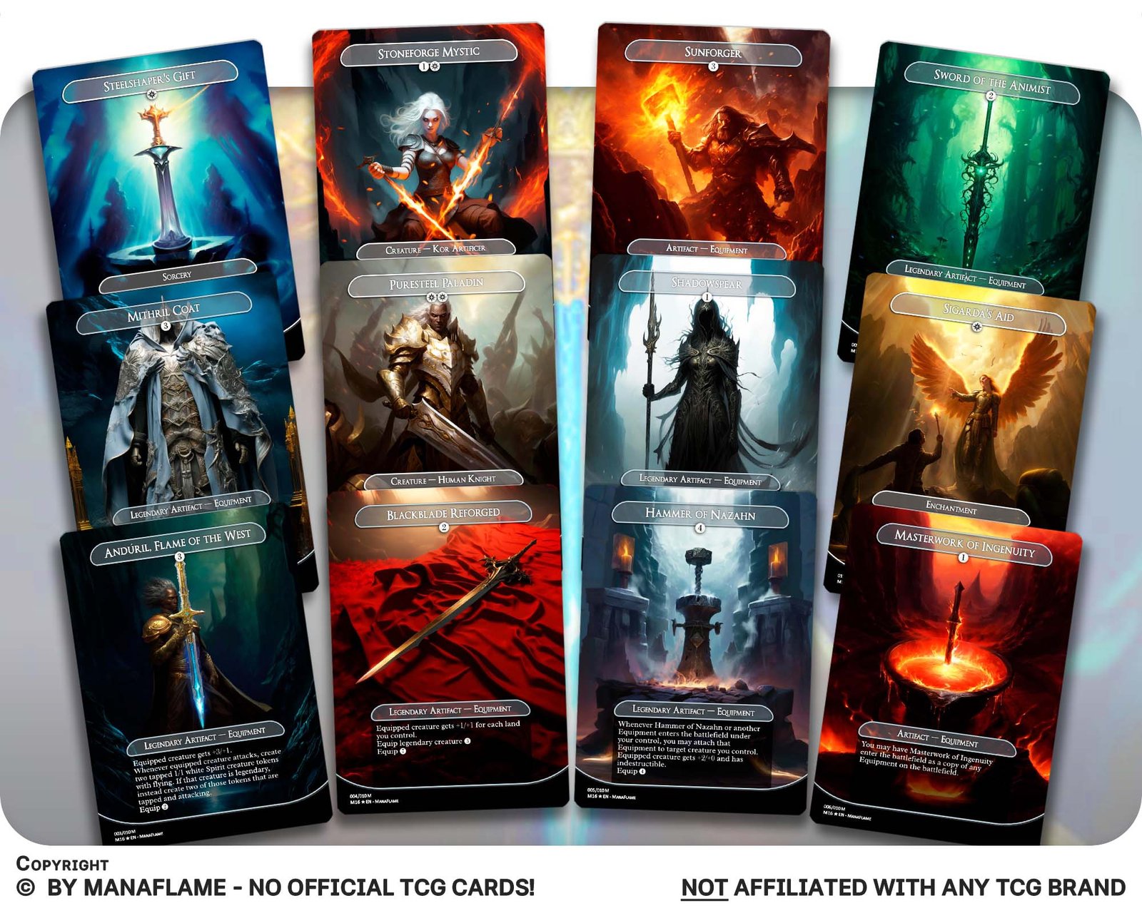 This 12-card set celebrates iconic Equipment and their best enablers. Perfect for turning any creature into a powerhouse, tutoring up legendary blades, or protecting your board with indestructible gear.