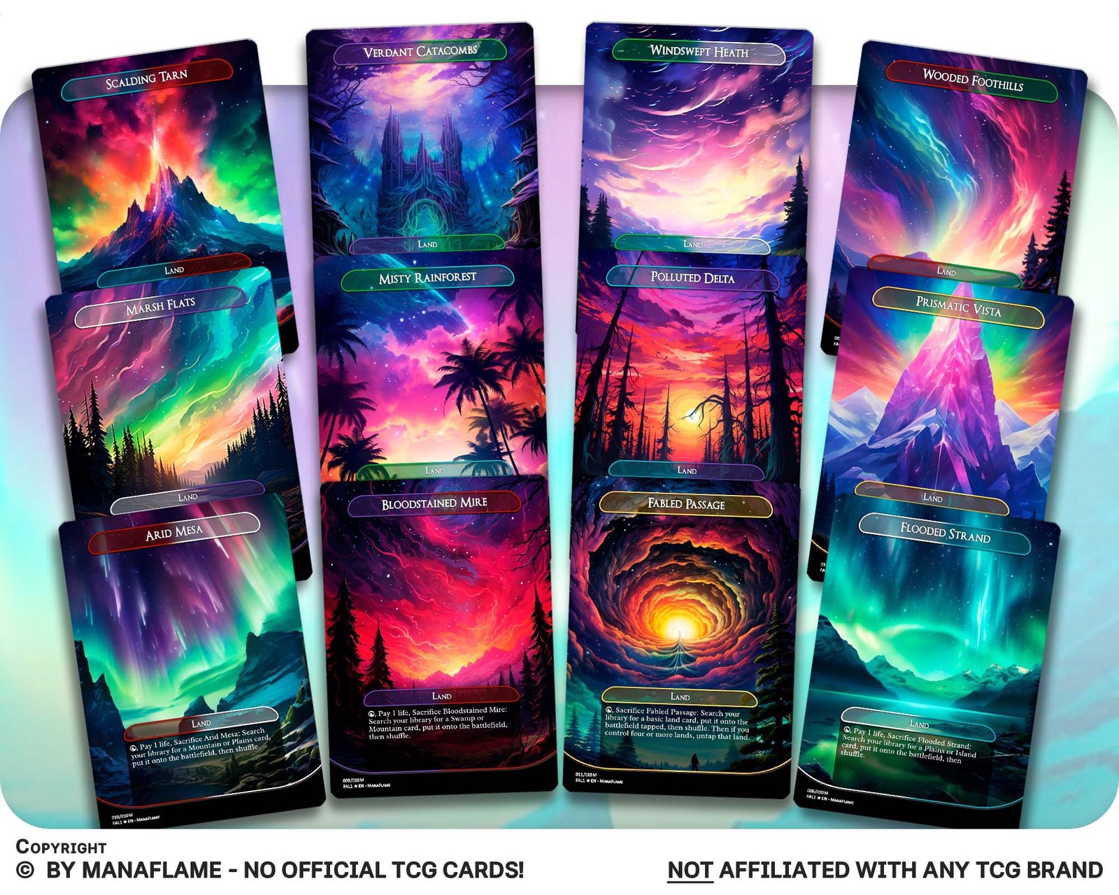 This 12-card set includes iconic fetch lands and support fetches, reimagined as ManaFlame proxies. Perfect for Commander players, competitive builders, or anyone who wants consistent mana fixing in their decks.