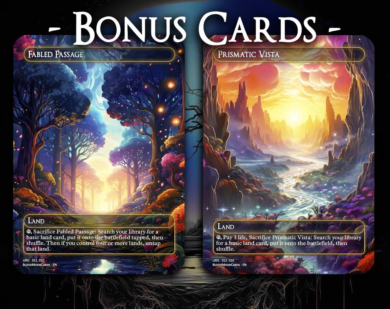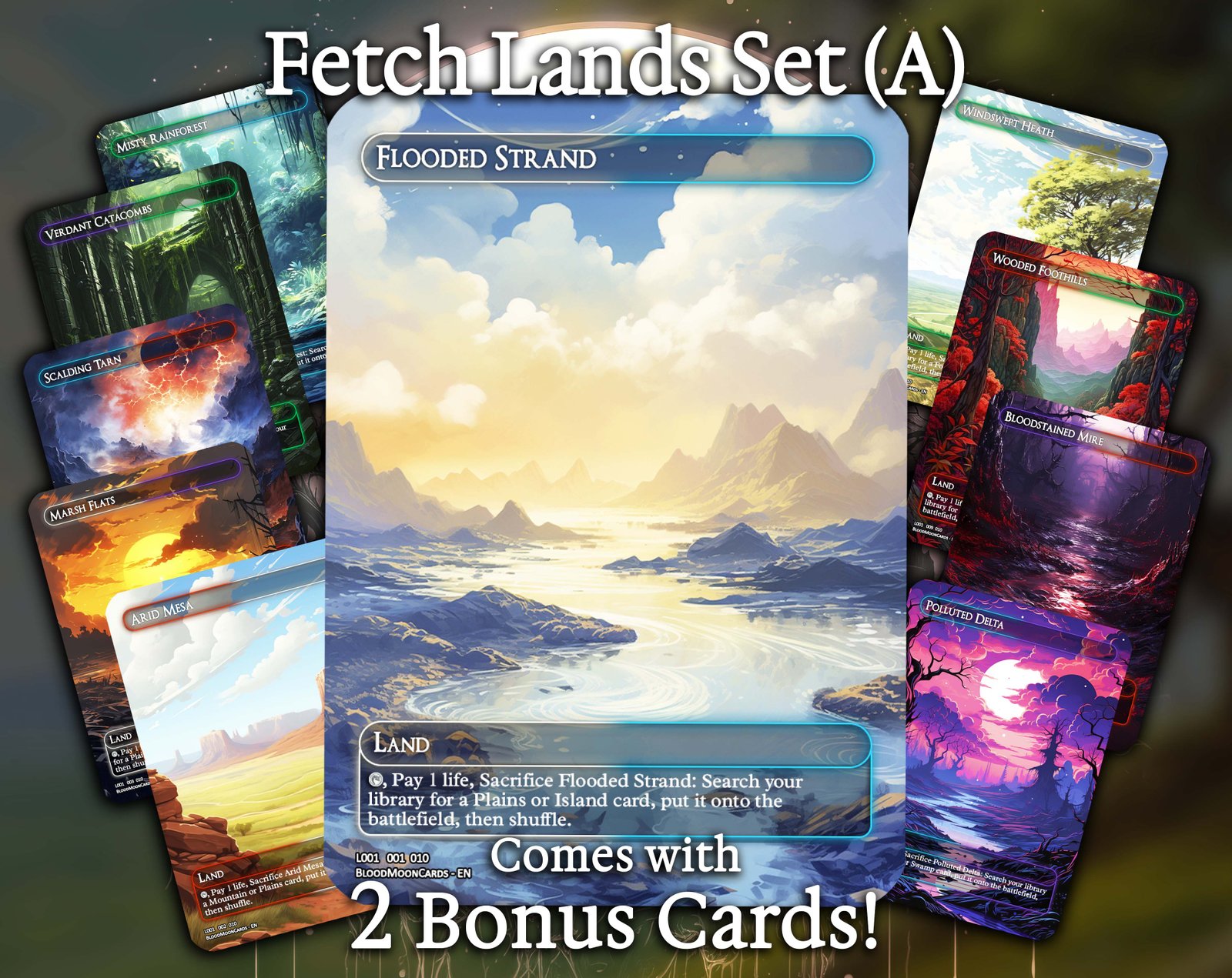 A 12-card collection of the most iconic and competitive fetch lands in Magic. These lands are the cornerstone of mana-fixing and are essential for nearly every multi-color deck, from casual Commander to cEDH. This set also includes Fabled Passage and Prismatic Vista for budget and singleton flexibility.
