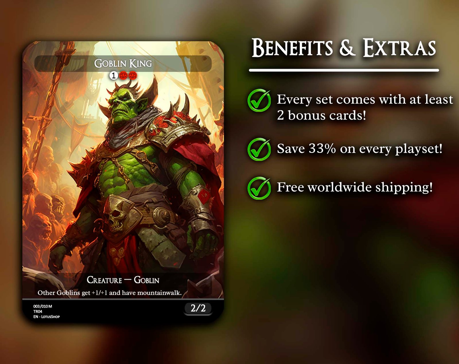 This 12-card set is packed with the chaotic energy of goblins, bringing swarms of mischievous creatures, powerful lords, and iconic tribal support into one bundle. Perfect for players who love fast-paced, explosive strategies and overwhelming their opponents with sheer numbers.