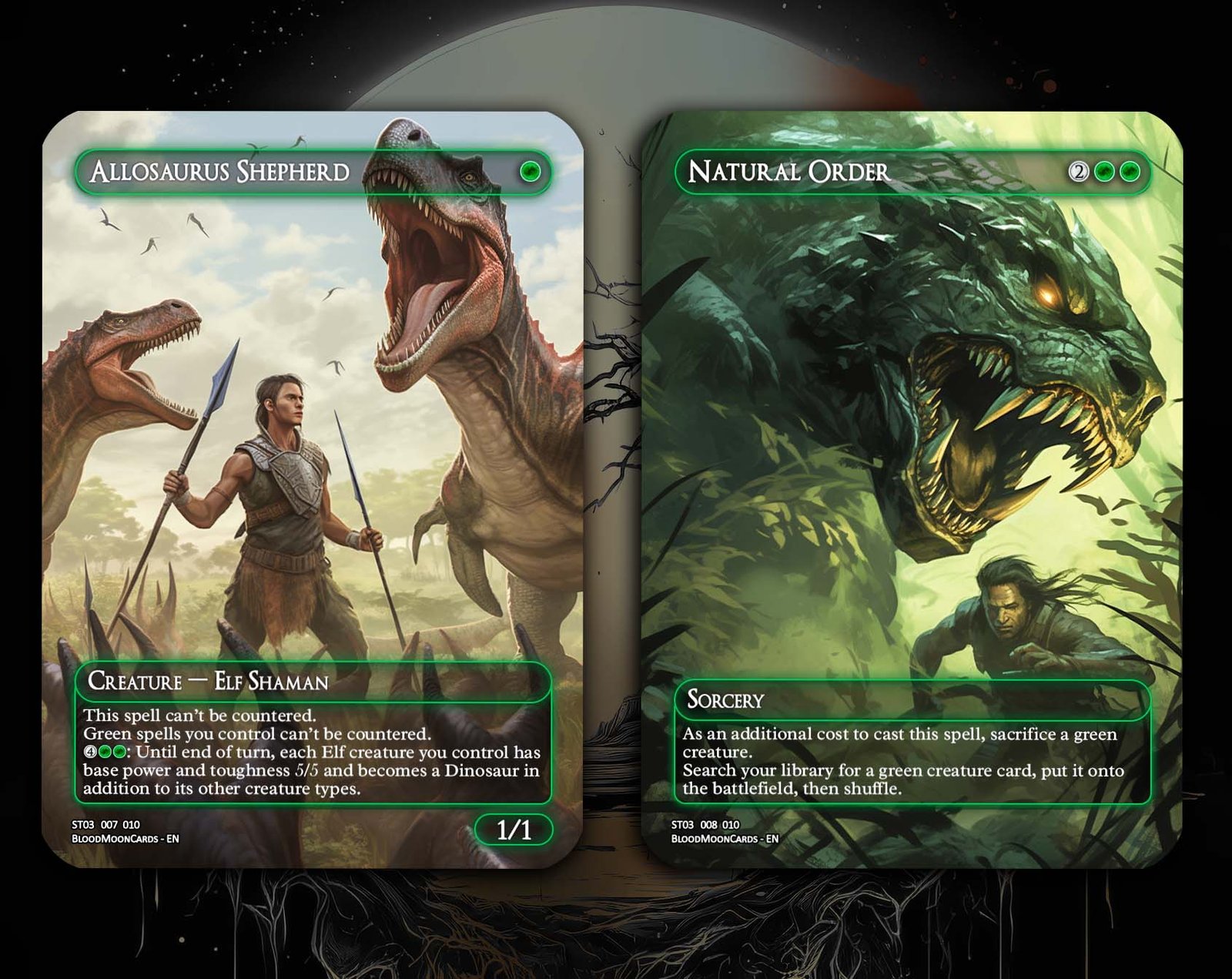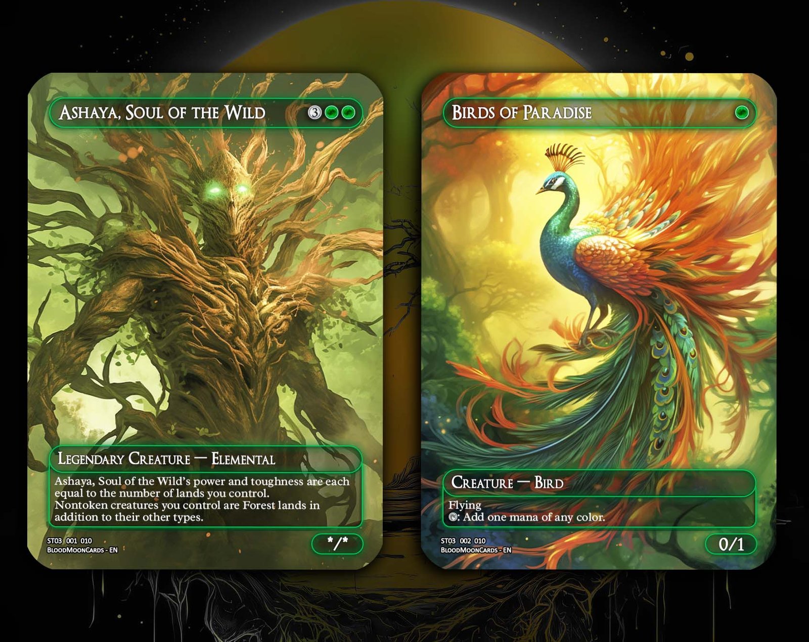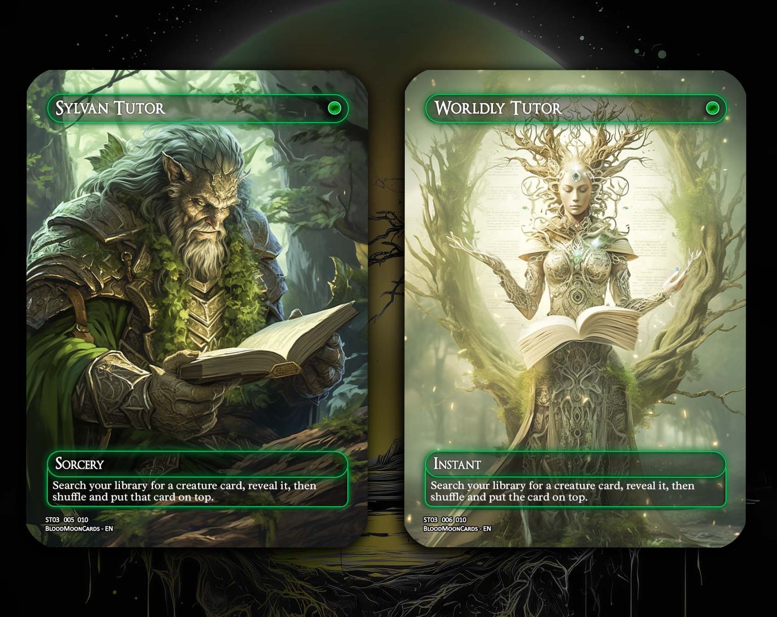A 12-card collection packed with the most iconic and powerful green staples in Magic. This set highlights green’s strengths: ramp, tutoring, recursion, and overwhelming board presence. Perfect for Commander and midrange strategies that thrive on mana acceleration and big plays.