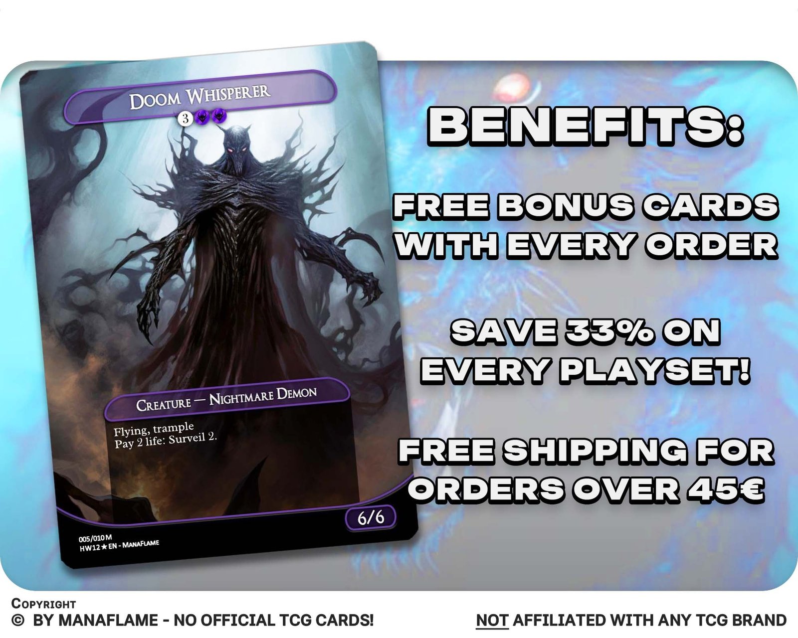 Step into the realm of shadows with this 12-card Halloween Nightmare Set (B). Packed with horrors, phantoms, and twisted creatures of the night, this ManaFlame set is perfect for haunting your EDH tables with a truly eerie presence.