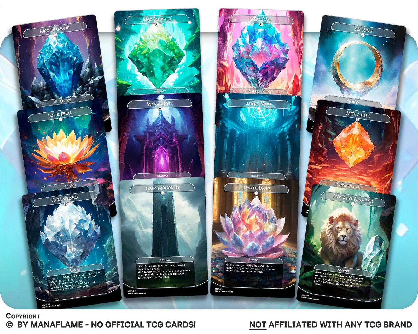 This 12-card set features some of Magic’s most iconic mana accelerators, from the infamous Sol Ring to high-power staples like Mana Crypt, Jeweled Lotus, and Lion’s Eye Diamond. Perfect for powering up Commander decks, cEDH builds, or anyone who loves the sparkle of legendary artifacts.