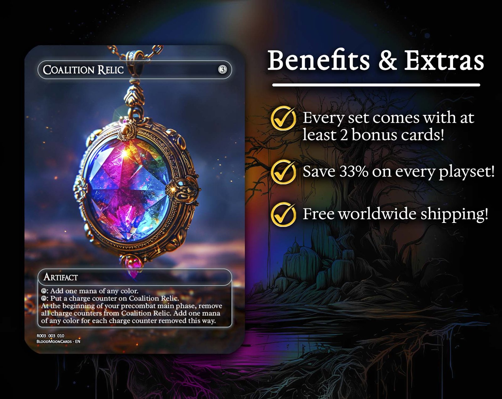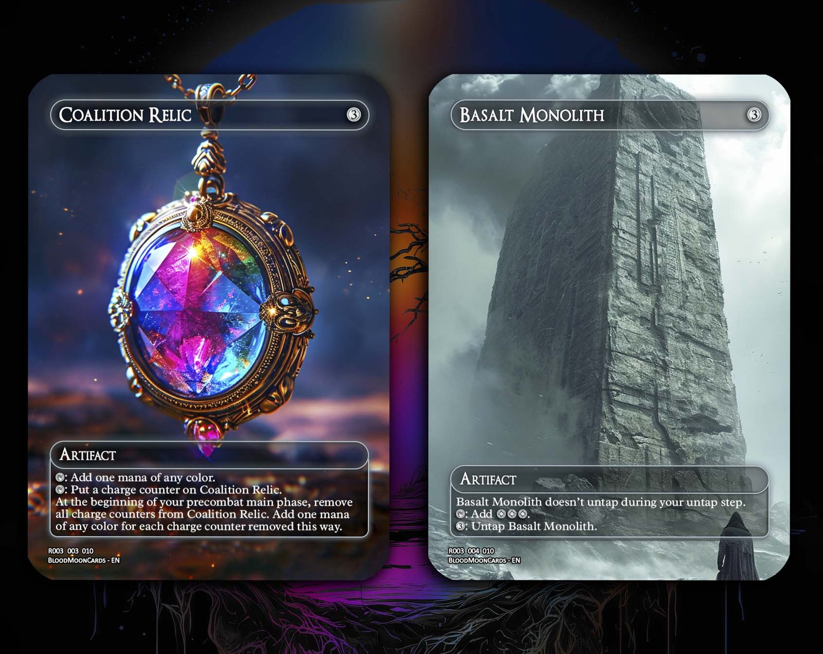A 12-card set showcasing mid-to-late game powerhouse artifacts that fuel ramp strategies, combo engines, and massive plays. Perfect for Commander and big-mana decks.