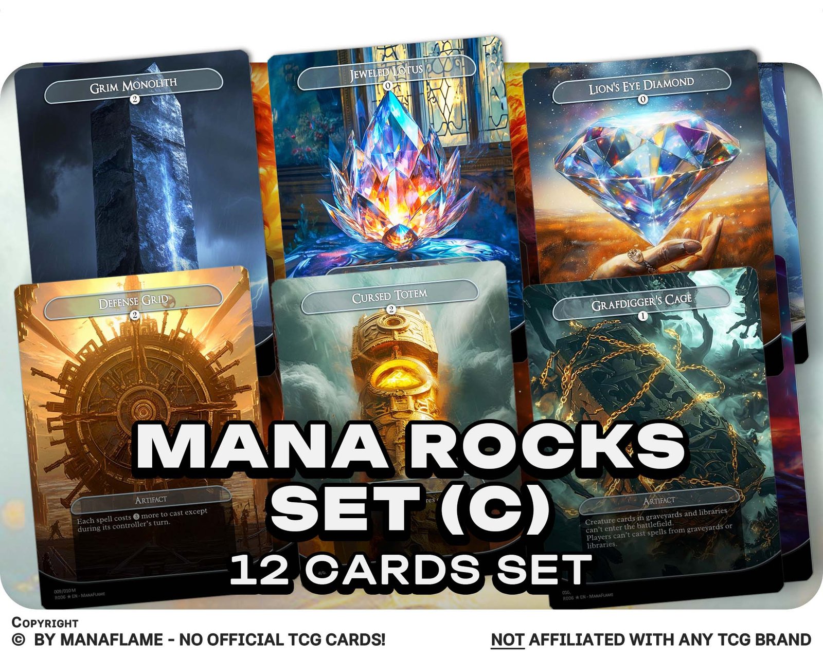 This 12-card set highlights some of the most powerful and iconic artifacts in Magic history, blending fast mana, combo pieces, and disruptive tools into one polished lineup. Perfect for cEDH players, artifact enthusiasts, or anyone who loves high-impact utility.