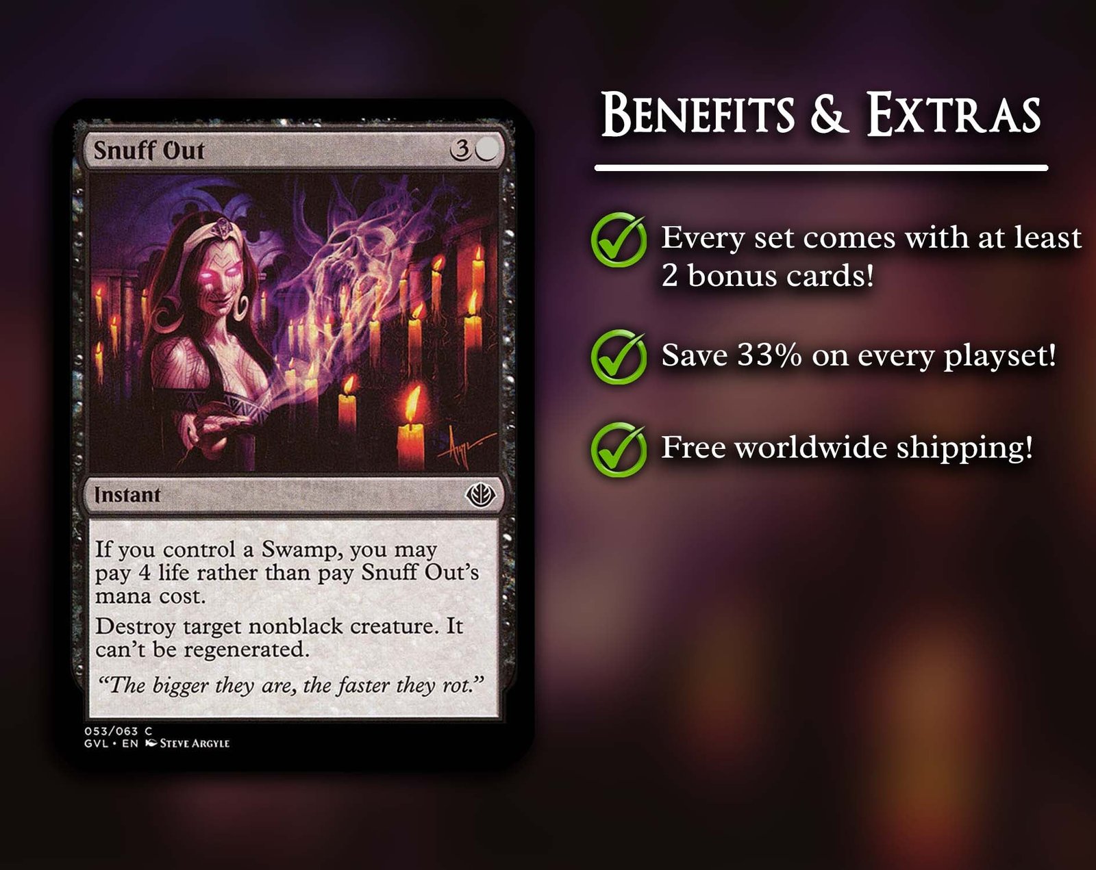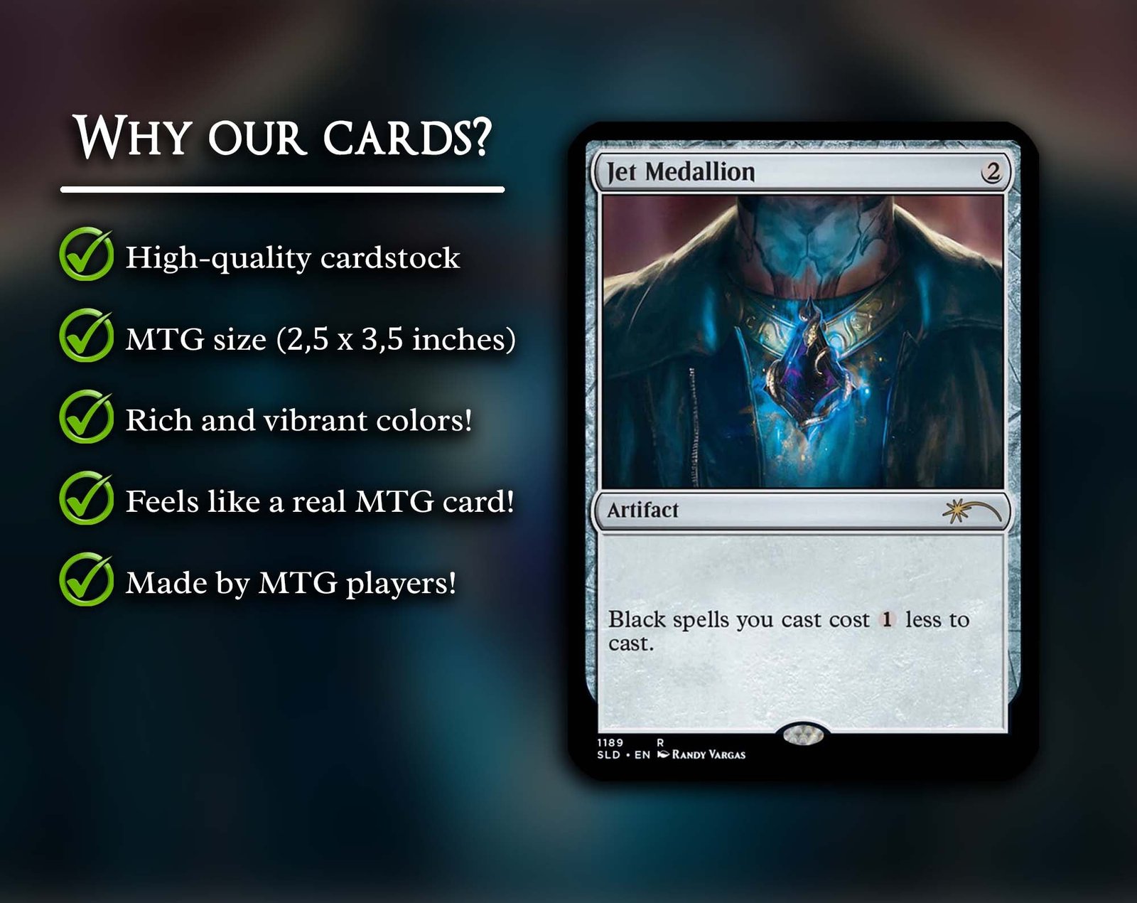 Explore the advantages: Our MTG proxies offer passionate players a wealth of benefits. Crafted with the utmost care, these proxy cards meticulously capture the essence of real MTG cards, creating a captivating and authentic gaming experience. The impressive full-art designs draw inspiration from the style of the latest MTG cards, ensuring that your collection stands out from the crowd. These enchanting cards not only enhance your gameplay but also serve as exquisite artworks that add a touch of sophistication to your MTG deck. You can rest assured that our proxy cards are made from the highest quality materials, ensuring durability and longevity.