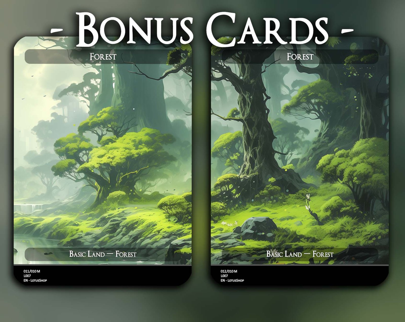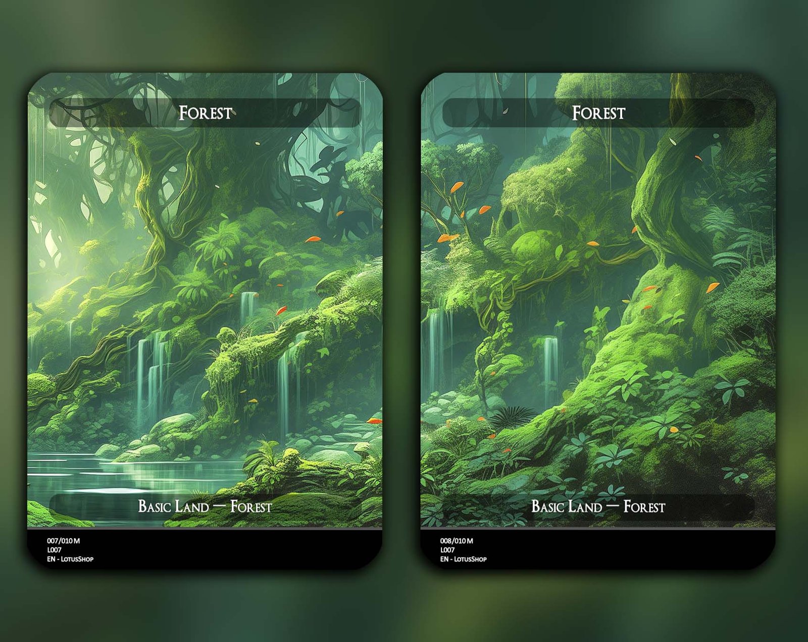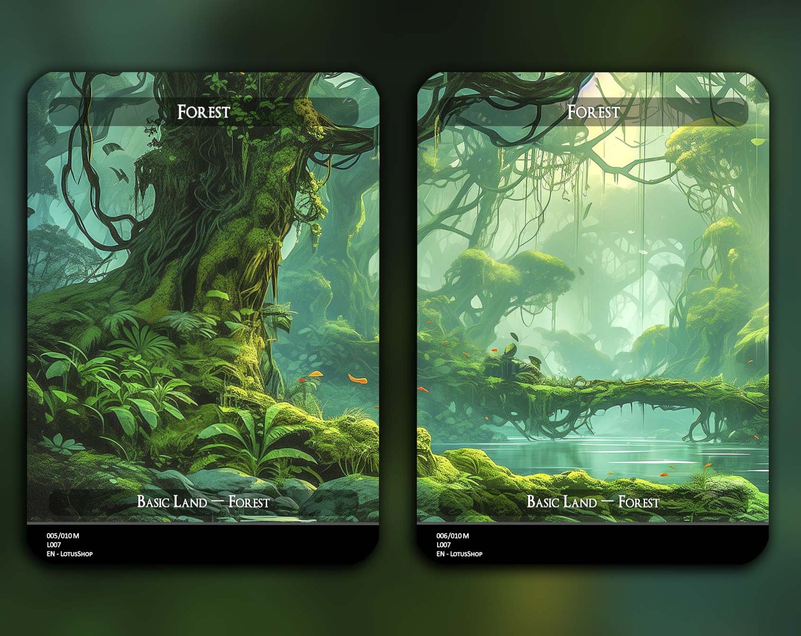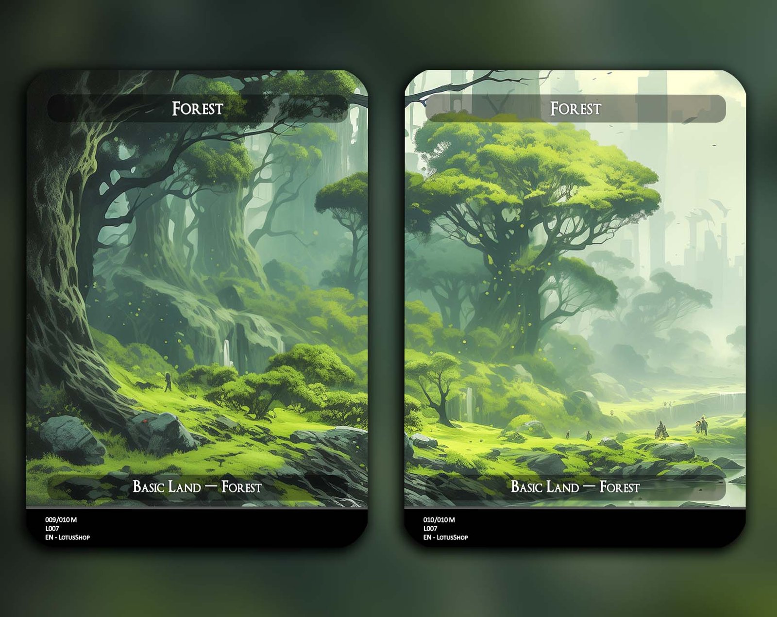 A 12-card set of basic Forests, each featuring a unique panoramic artwork. Perfect for unifying your deck’s theme while adding striking visual flair across your mana base.