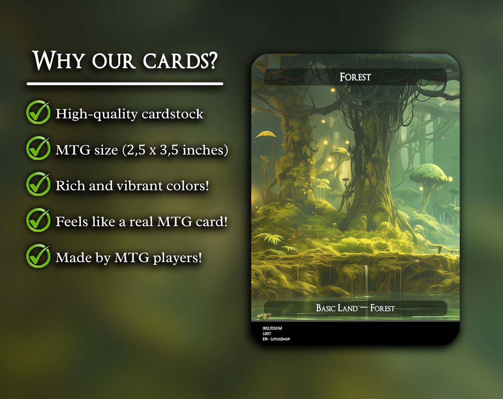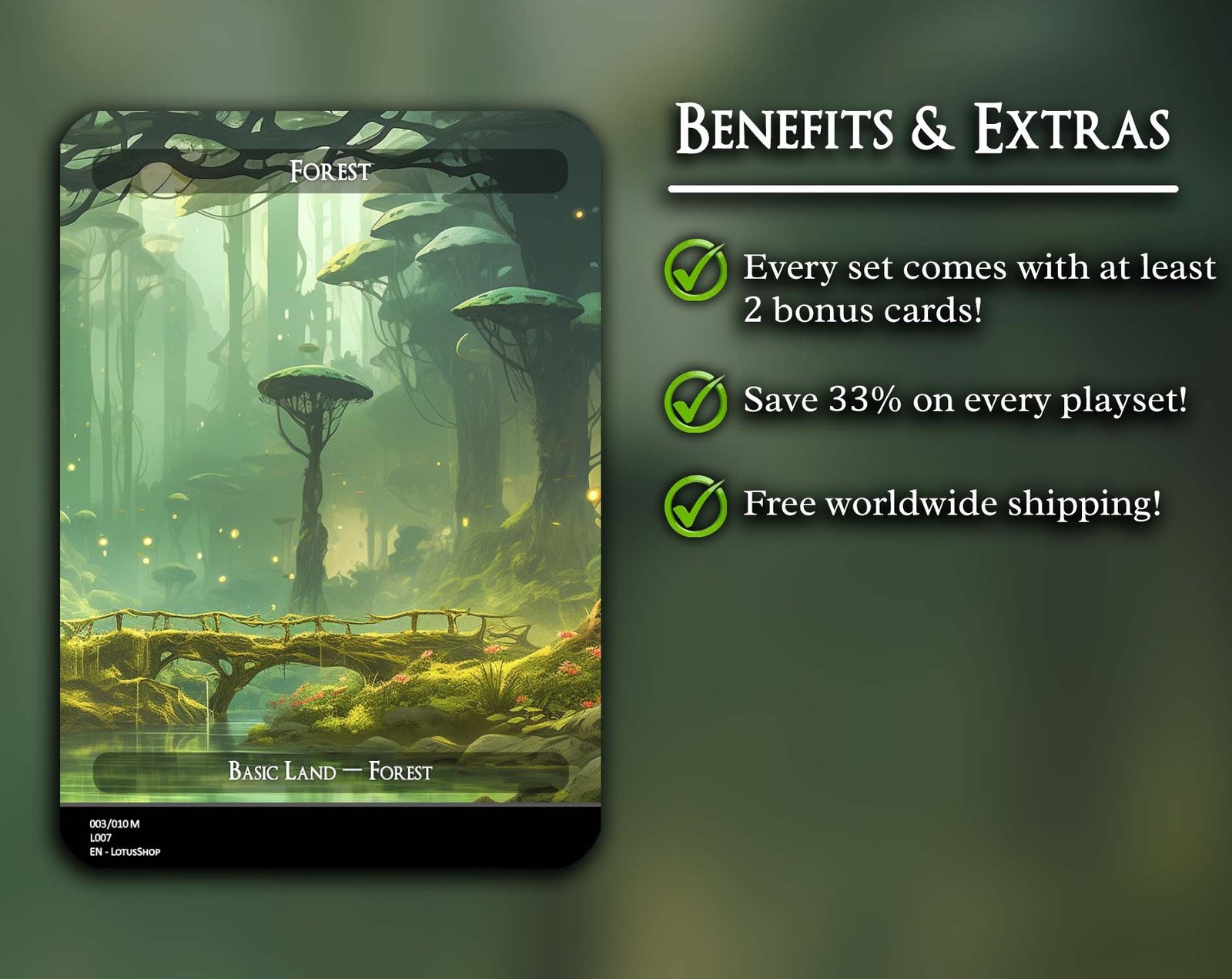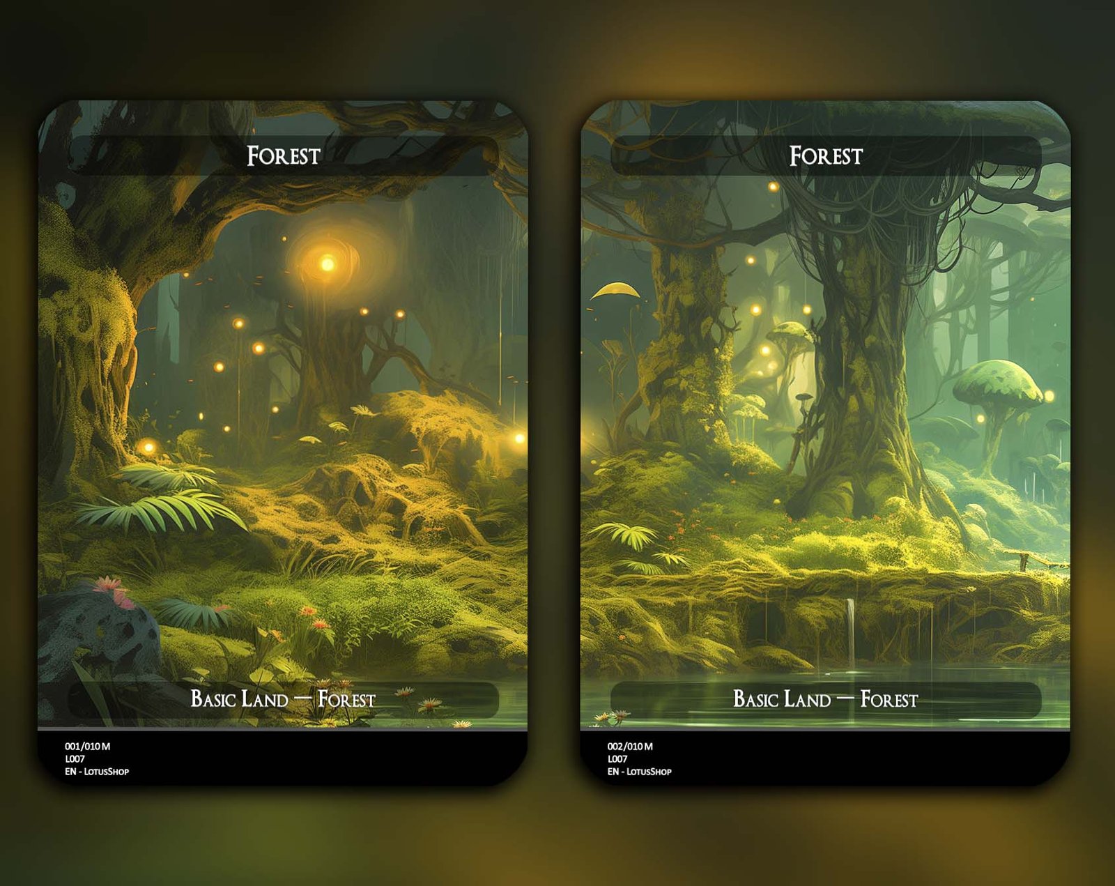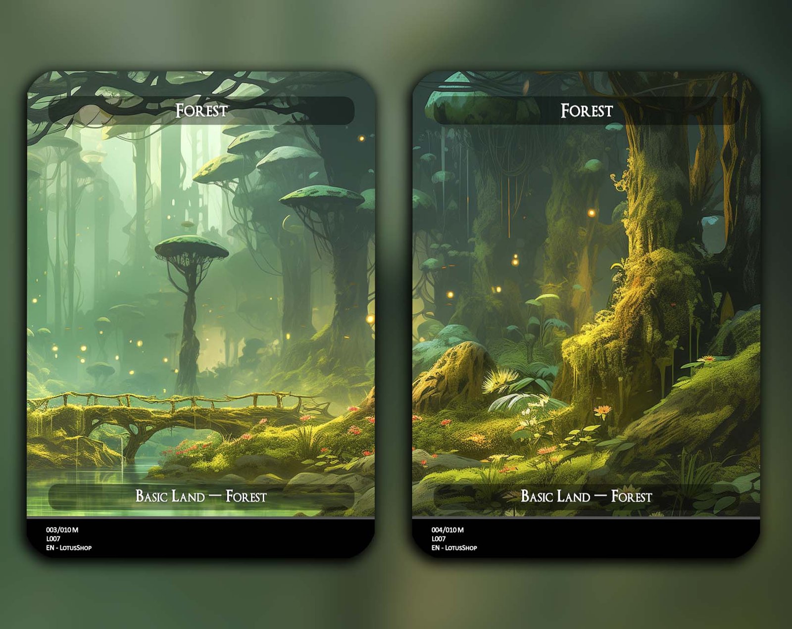 A 12-card set of basic Forests, each featuring a unique panoramic artwork. Perfect for unifying your deck’s theme while adding striking visual flair across your mana base.