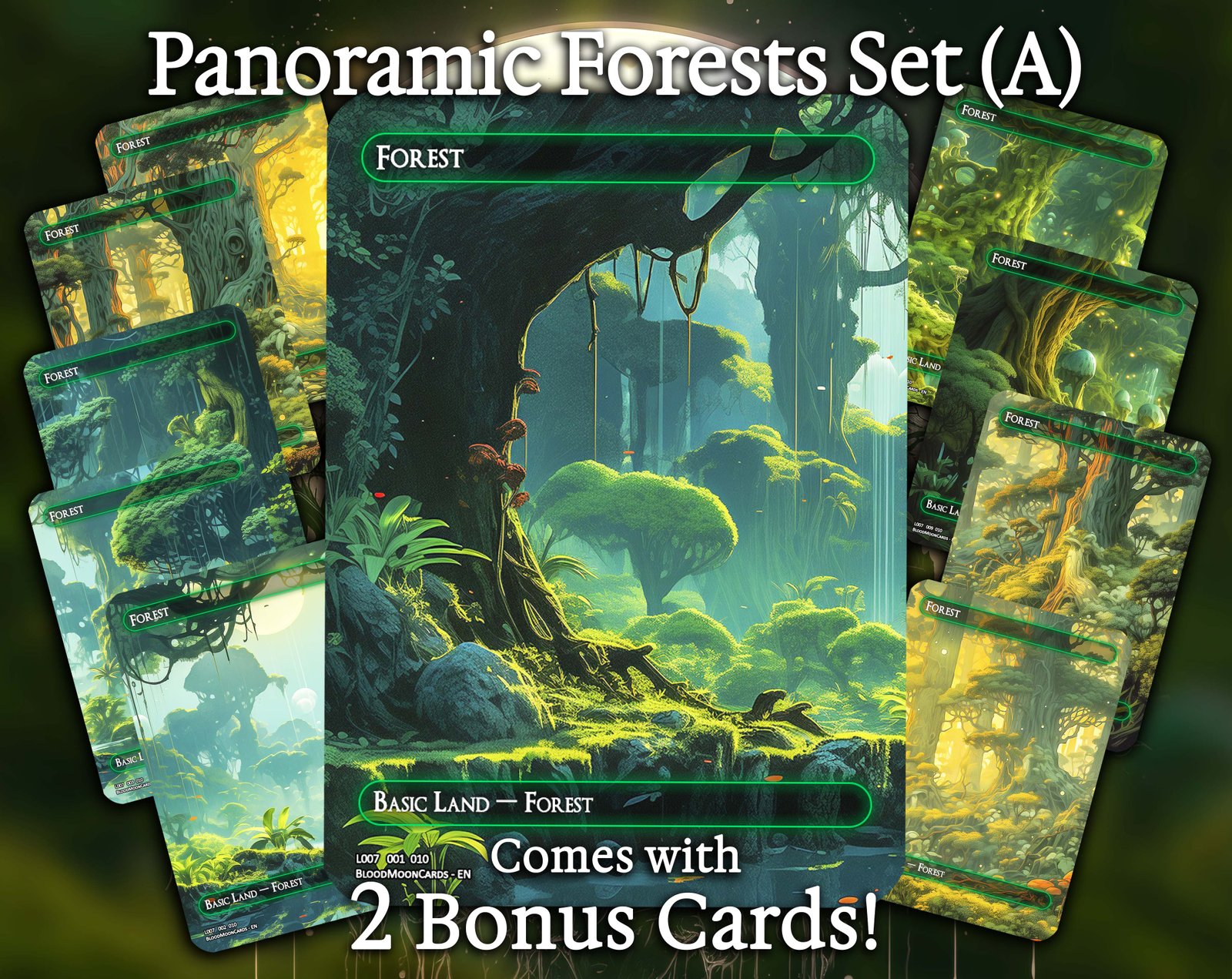 A 12-card land set featuring beautiful panoramic artwork. Perfect for giving your deck a unified and immersive look.