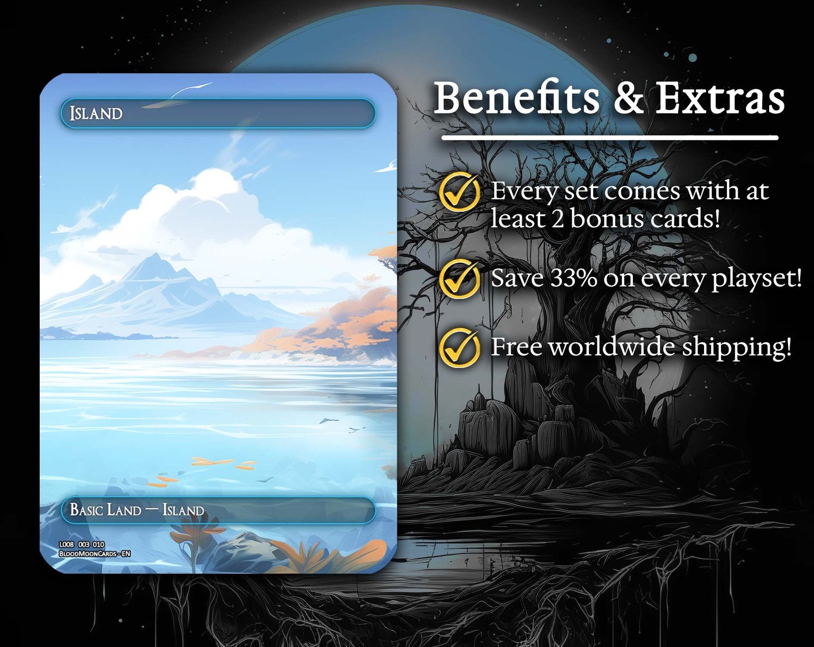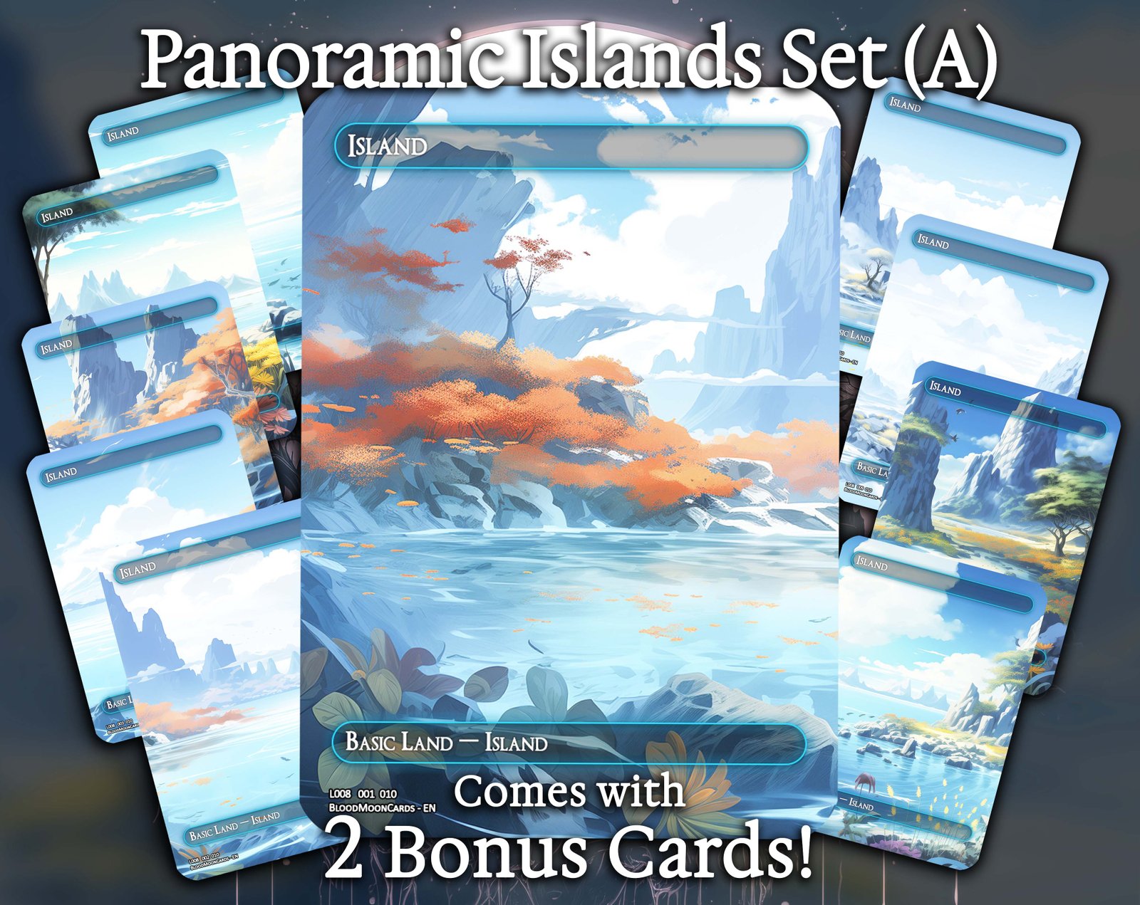 A 12-card land set featuring stunning panoramic Island artwork. Perfect for giving your deck a unified and immersive oceanic look.