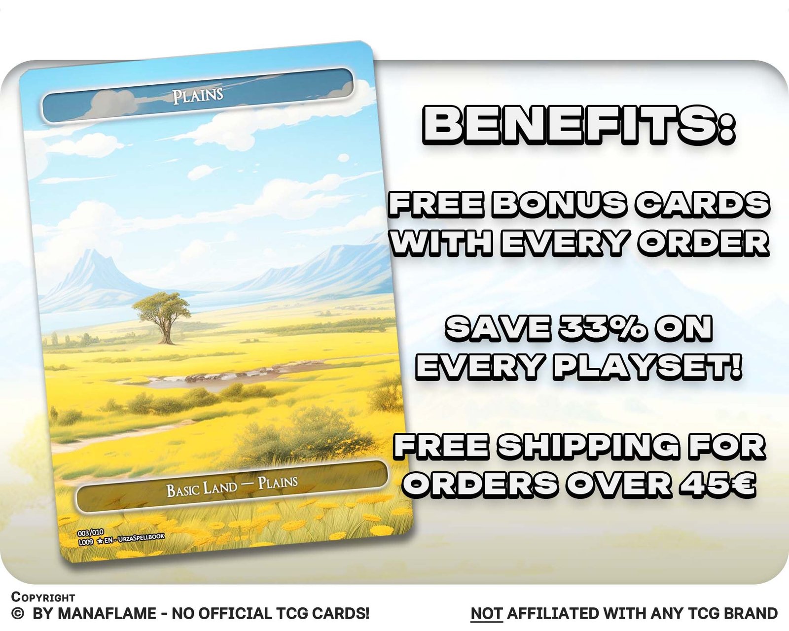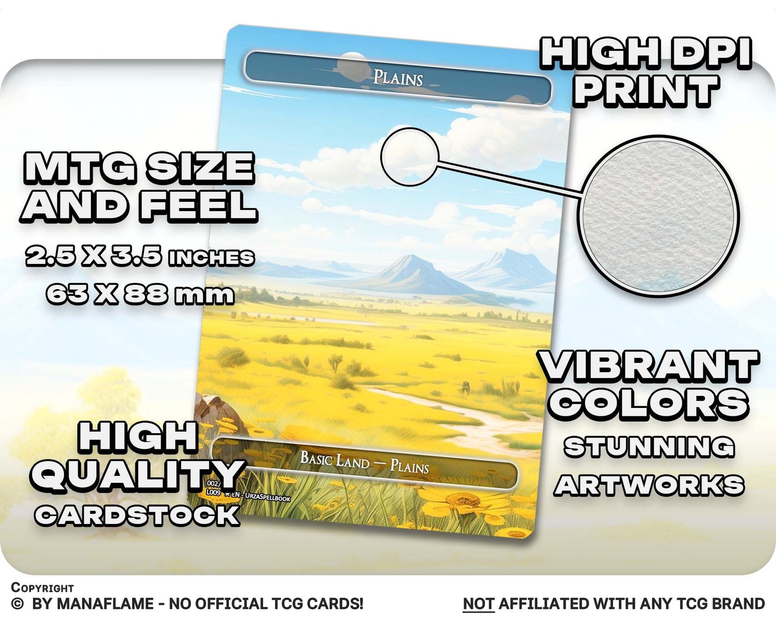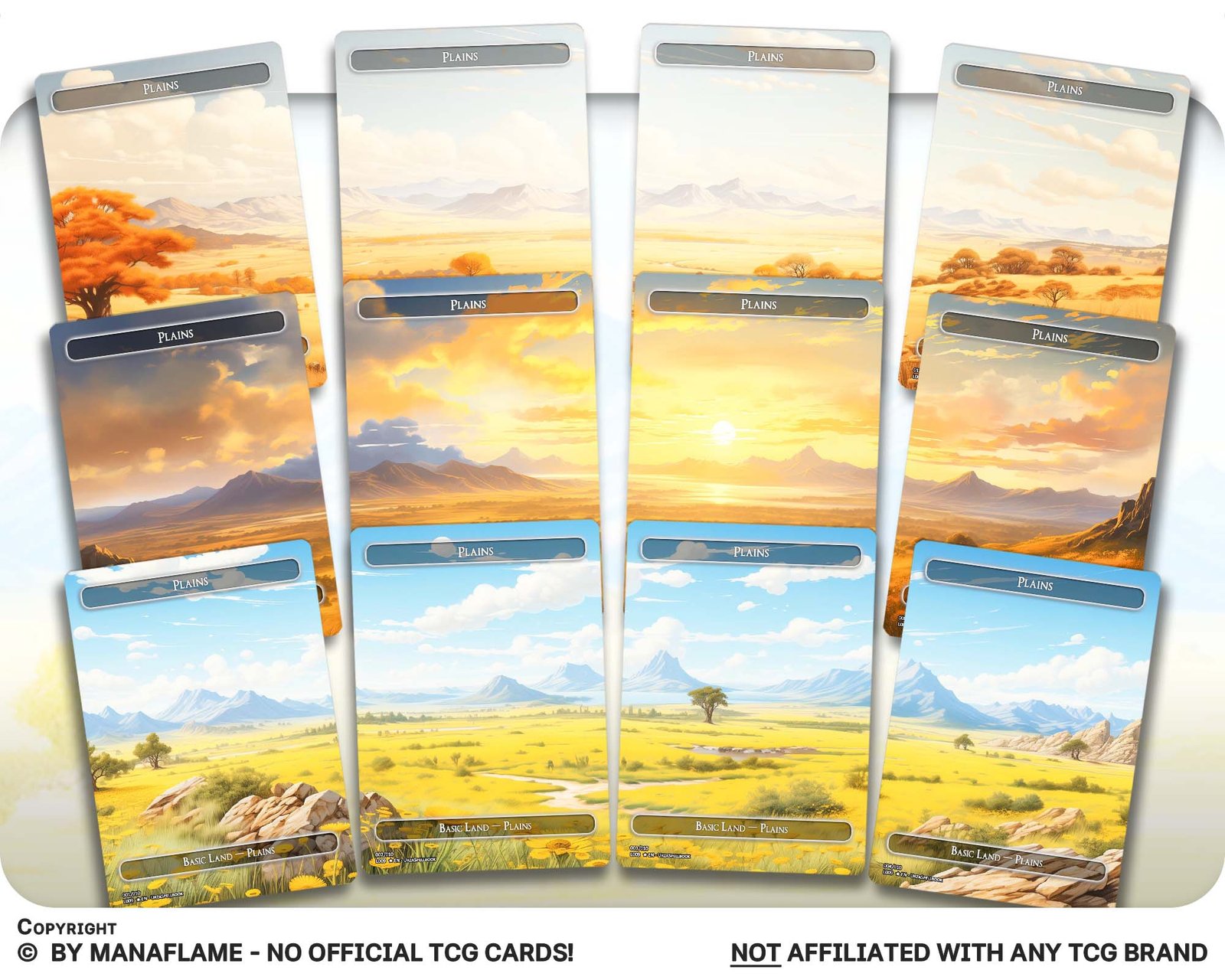 This 12-card set features bright and open full-art Plains, arranged to form a continuous panoramic landscape.