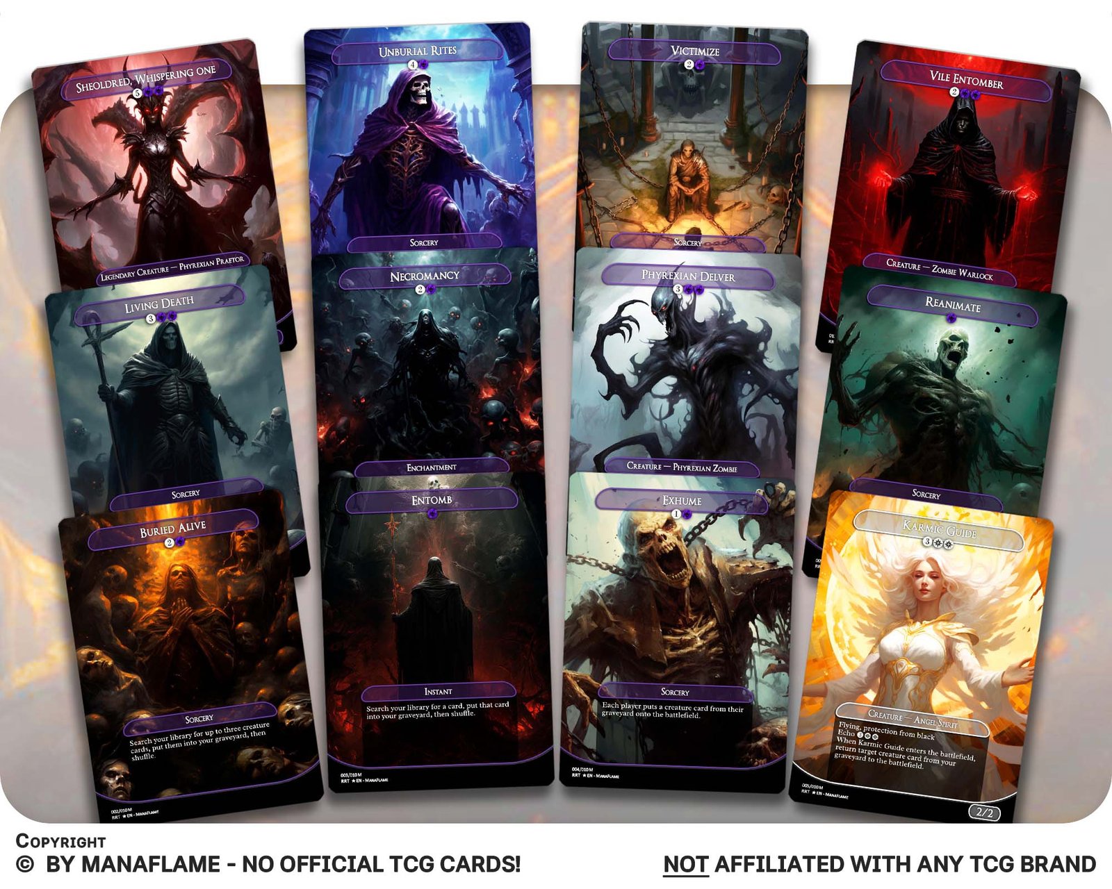This 12-card set brings together the core spells and creatures that define reanimator strategies. Load up your graveyard, cheat out massive threats, and control the game with some of Magic’s most iconic recursion pieces.
