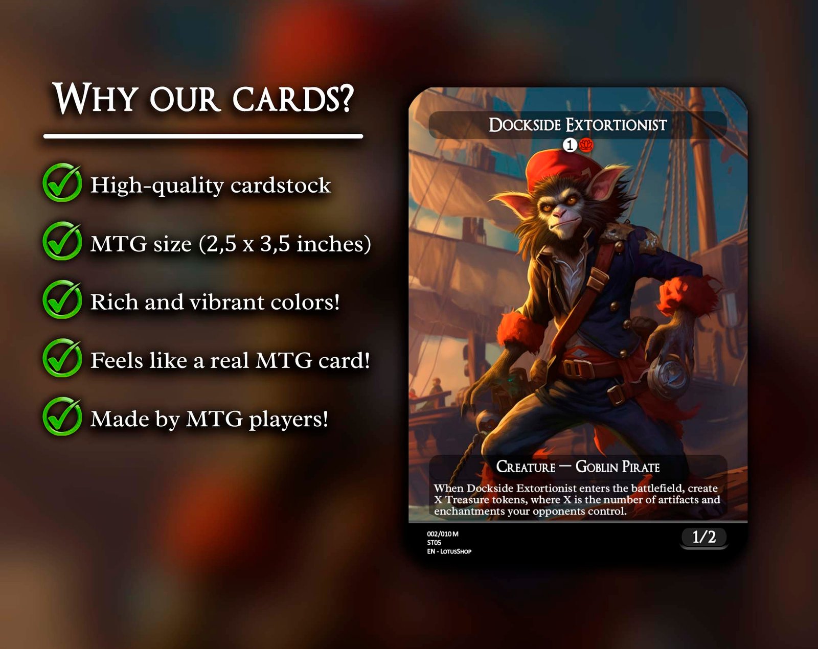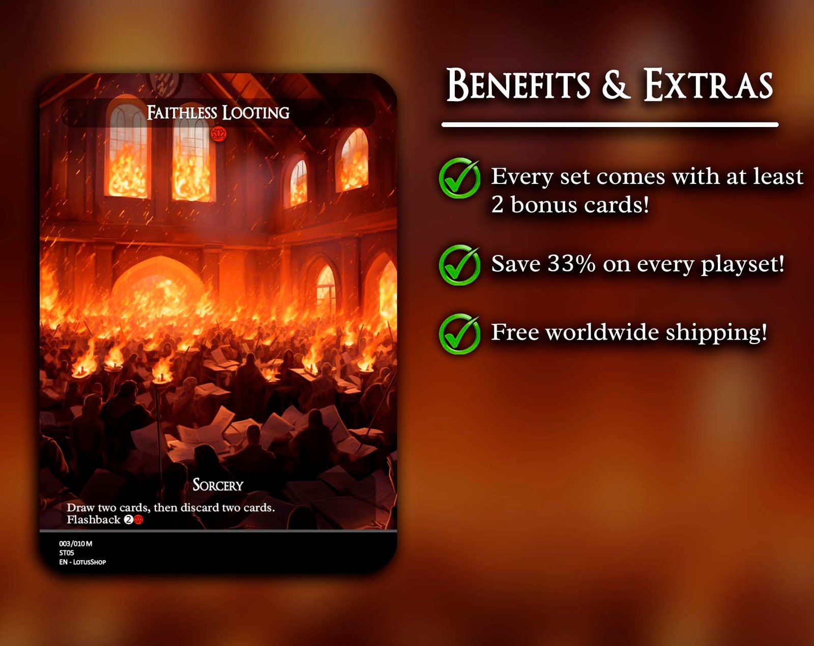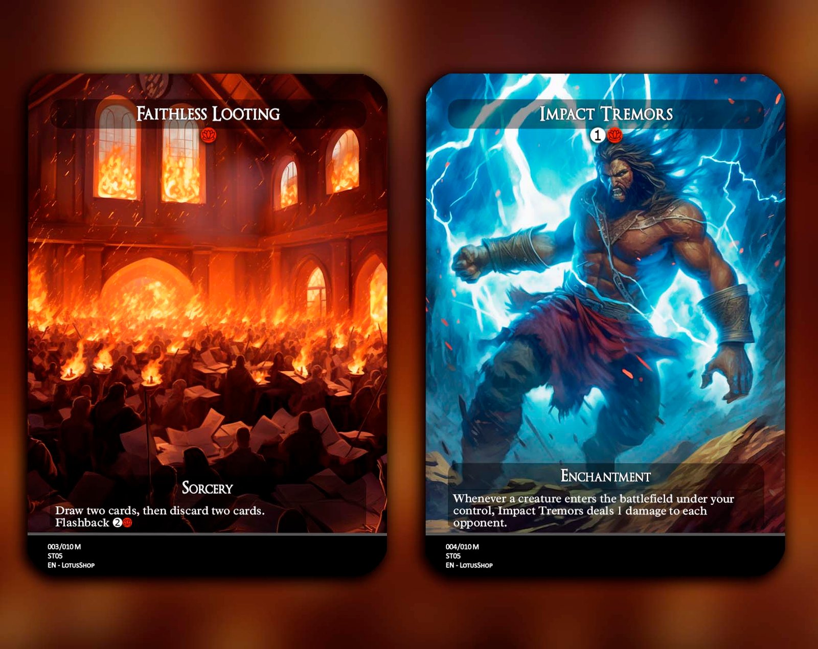 This 12-card set gathers the most iconic red staples for Commander, combining explosive ramp, removal, and game-winning synergies. From universal answers like Chaos Warp and Vandalblast, to powerhouse cards like Dockside Extortionist, Kiki-Jiki, Mirror Breaker, and Ragavan, Nimble Pilferer, this package captures red’s chaos and speed. Add in classics like Lightning Bolt, Faithless Looting, and Blasphemous Act, and you’ve got the perfect foundation for any red-inclusive deck.