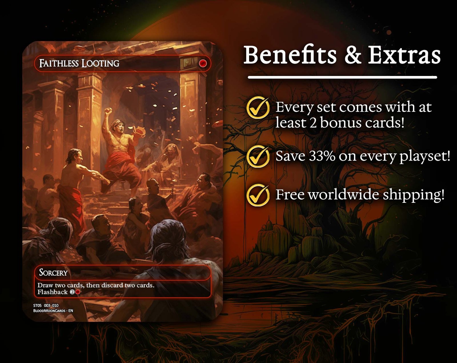A 12-card powerhouse collection of iconic red staples. From explosive ramp and efficient removal to game-ending combos, this set captures everything red brings to Commander — speed, chaos, and raw damage.