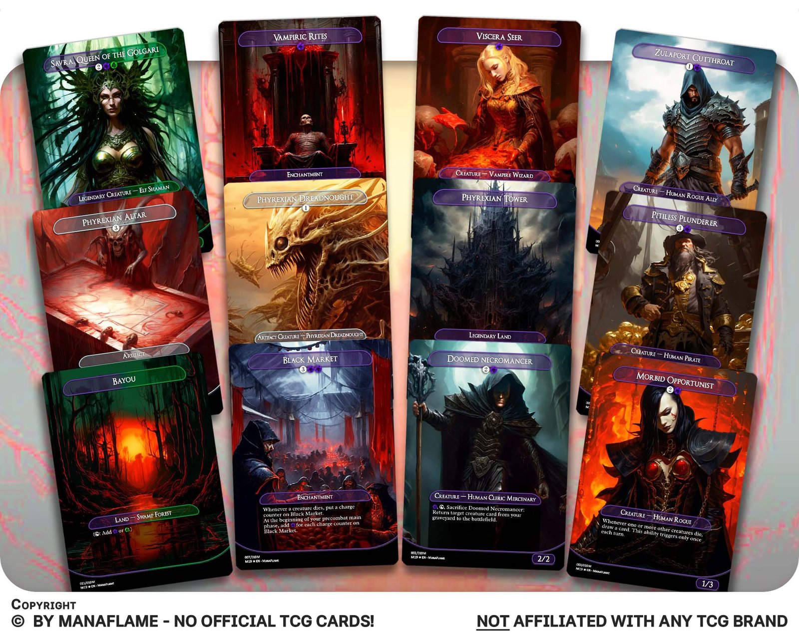 This 12-card set dives into the dark power of sacrifice strategies, blending value engines, payoffs, and powerful mana outlets. Ideal for Golgari, Jund, or Aristocrats decks looking to turn every creature into an advantage.