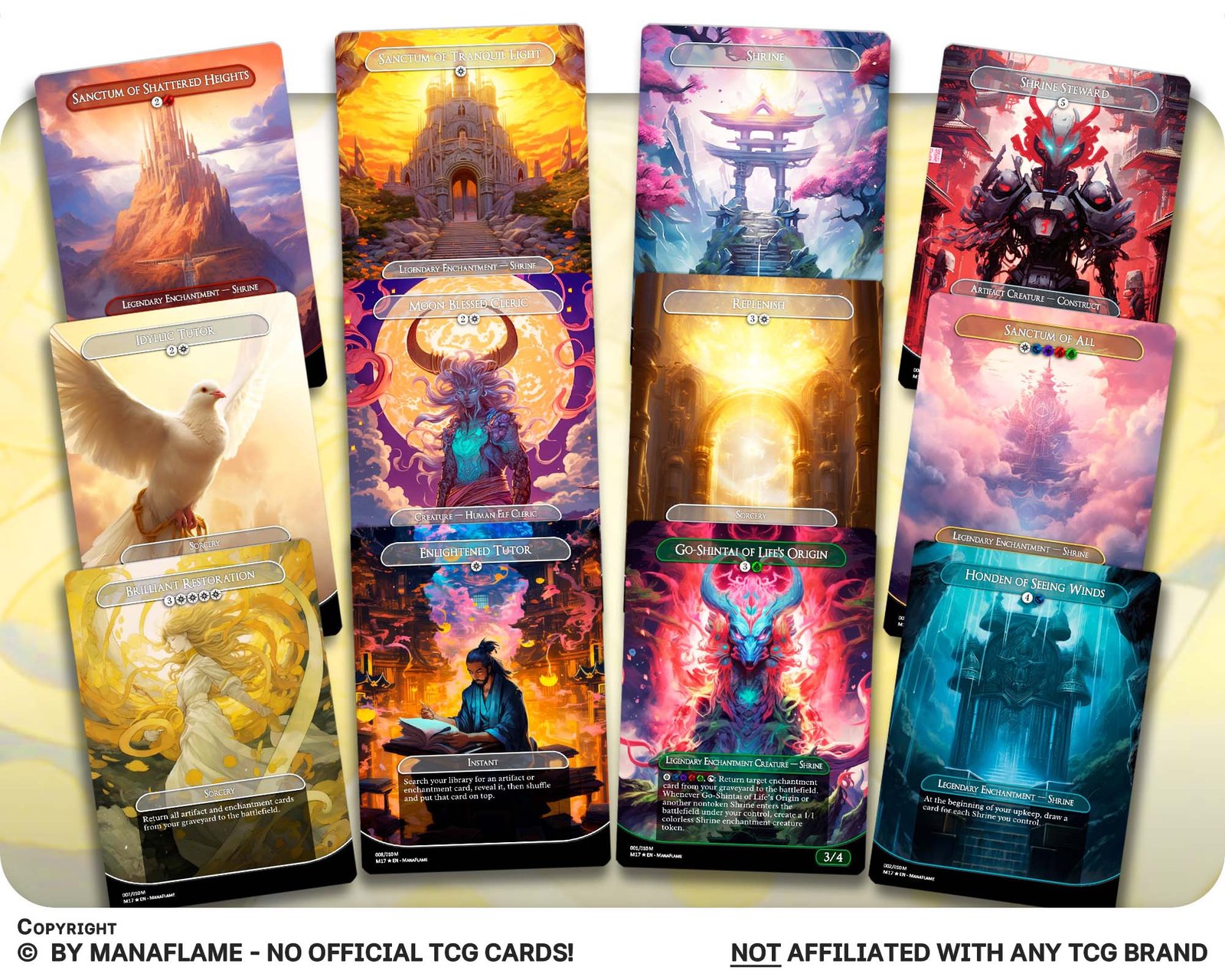 This 12-card set embodies the mystical power of Shrines and the enchantments that support them. Combining legendary Shrines with powerful tutors and recursion, it’s perfect for anyone who wants to channel divine synergy.
