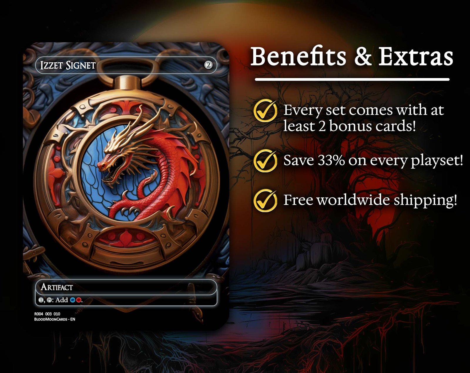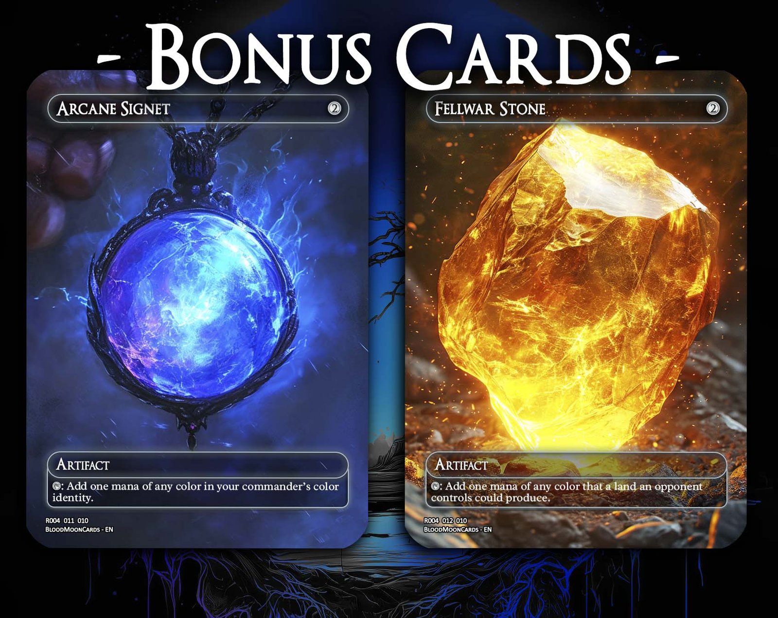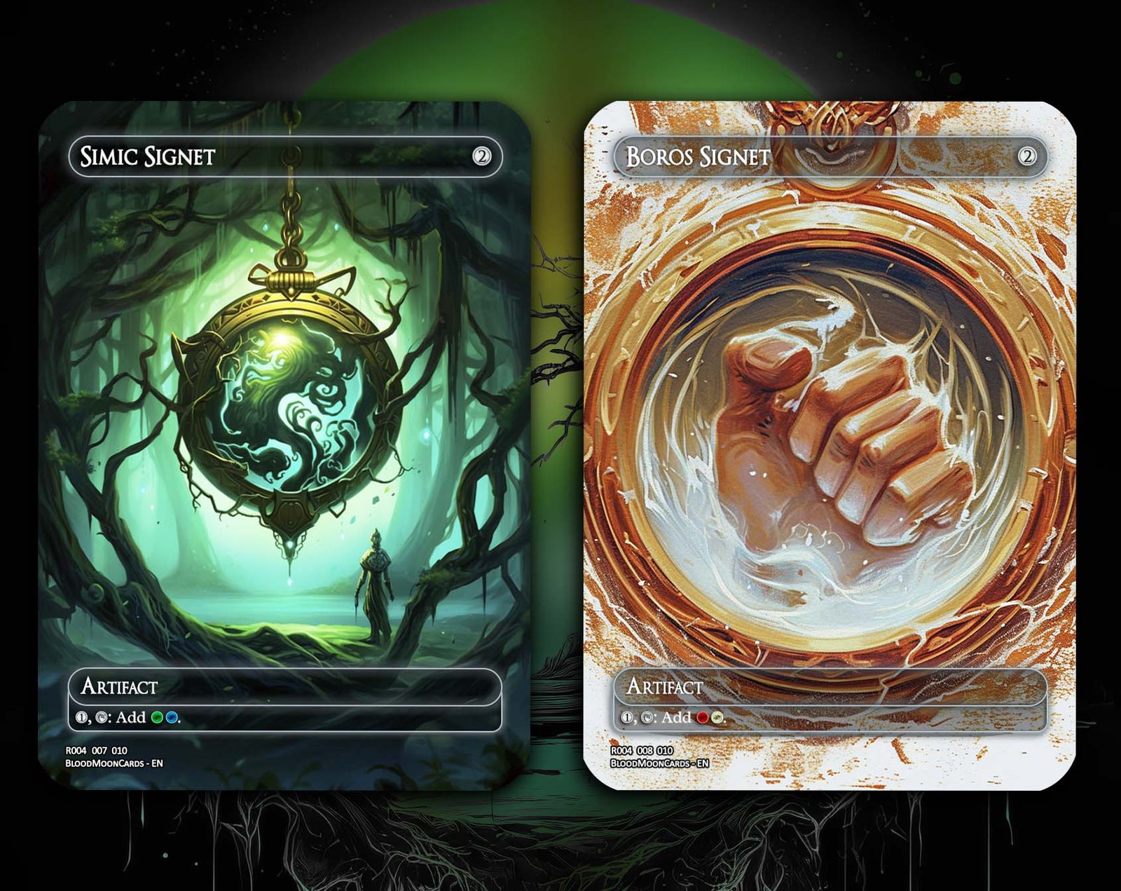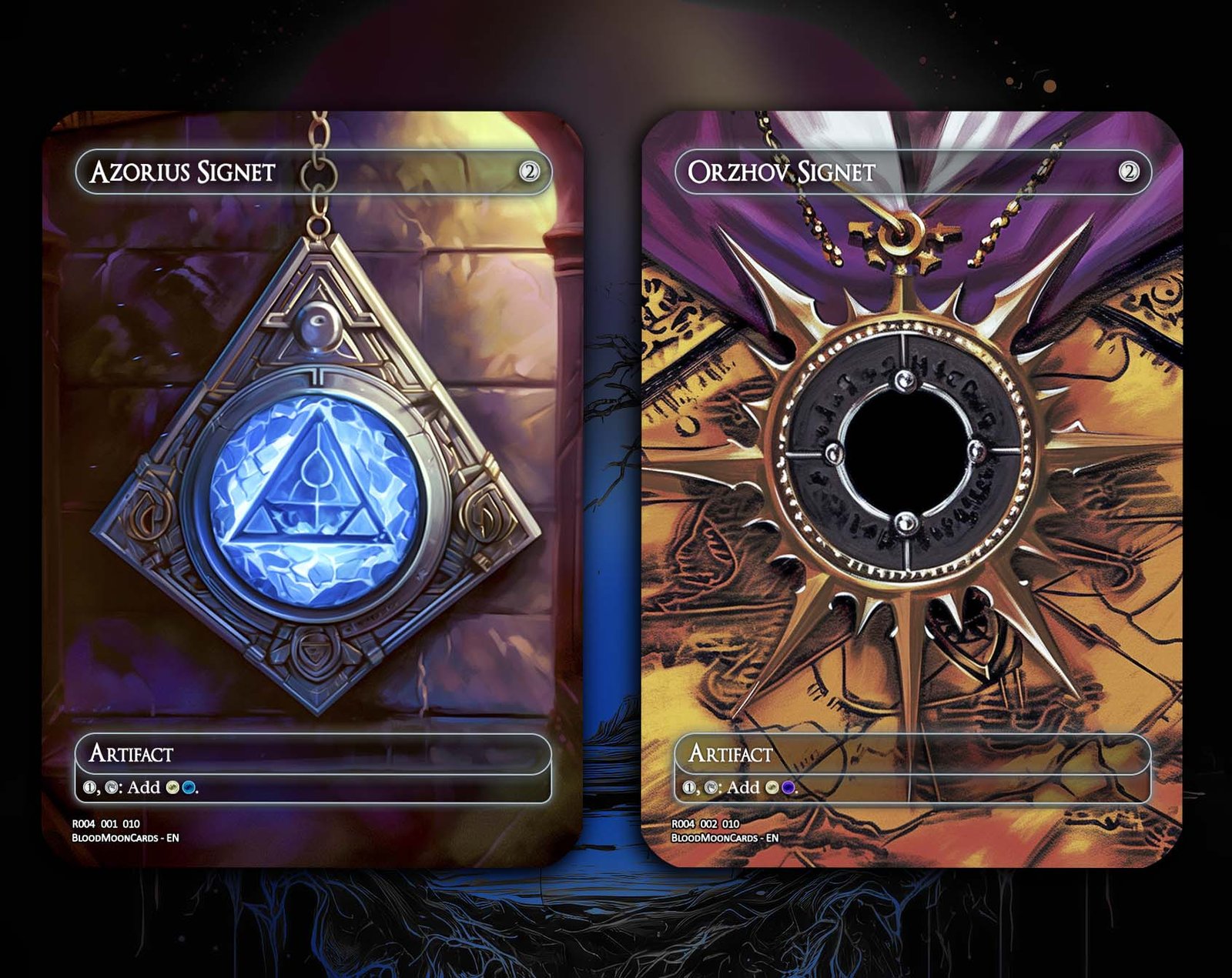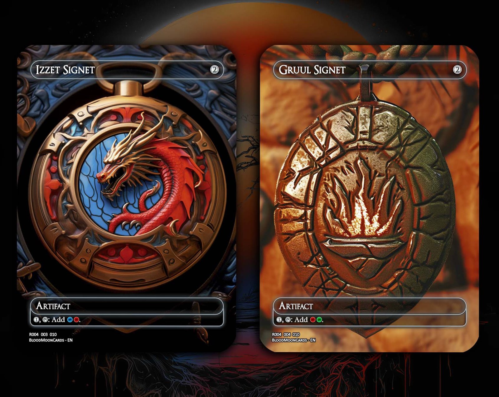 A 12-card artifact set featuring some of the most iconic mana-fixing tools in Commander. The Ravnica Signets alongside Arcane Signet and Fellwar Stone make this set a cornerstone for any multicolor deck that values speed and consistency.