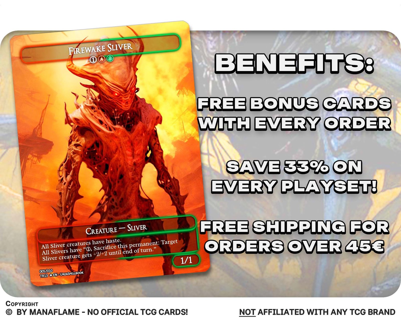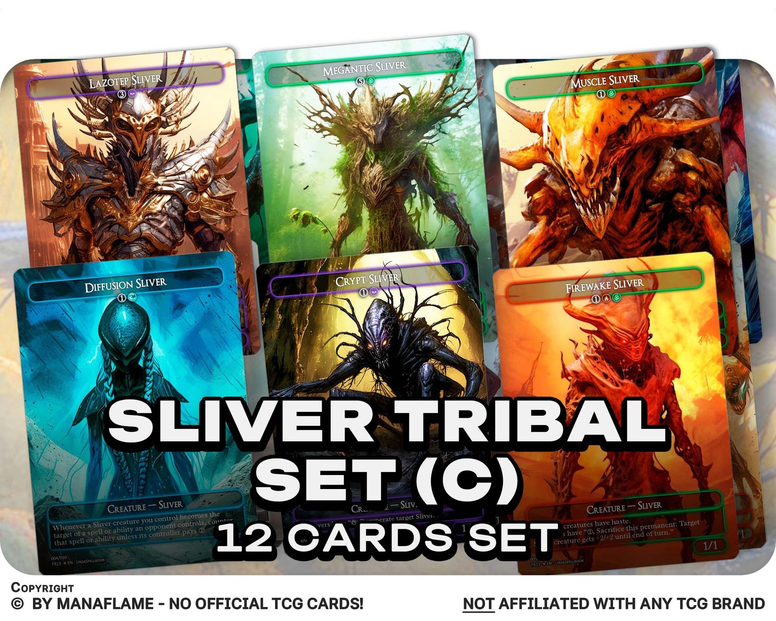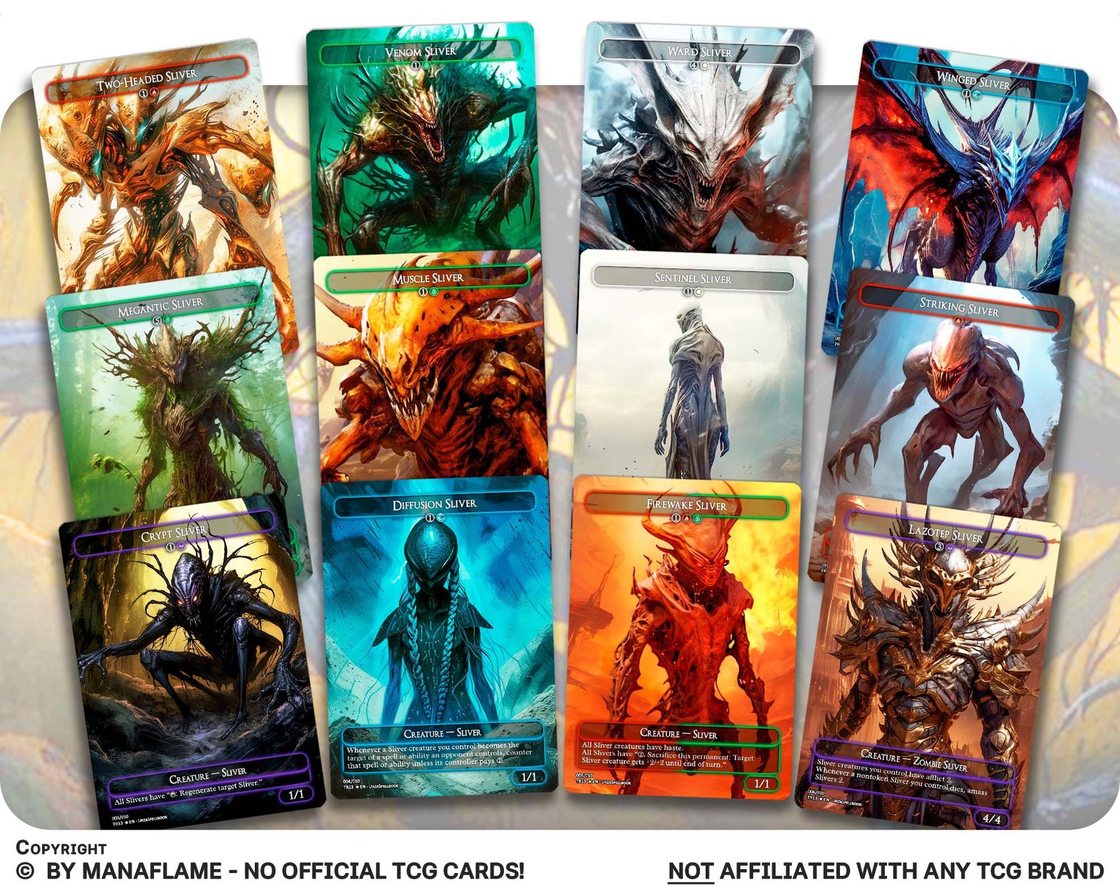A 12-card collection of classic and versatile Sliver staples — featuring combat boosts, evasion, protection, and utility effects that turn the hive into a resilient and deadly force. Perfect for proxy enthusiasts who want to strengthen their swarm with old-school power and modern resilience.