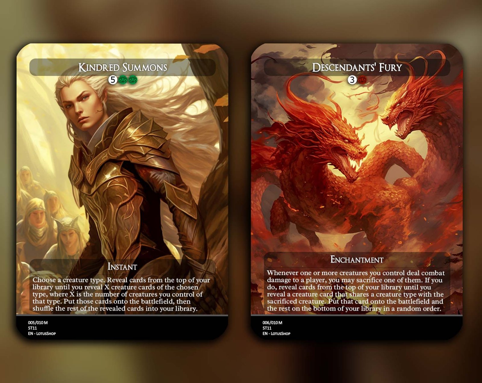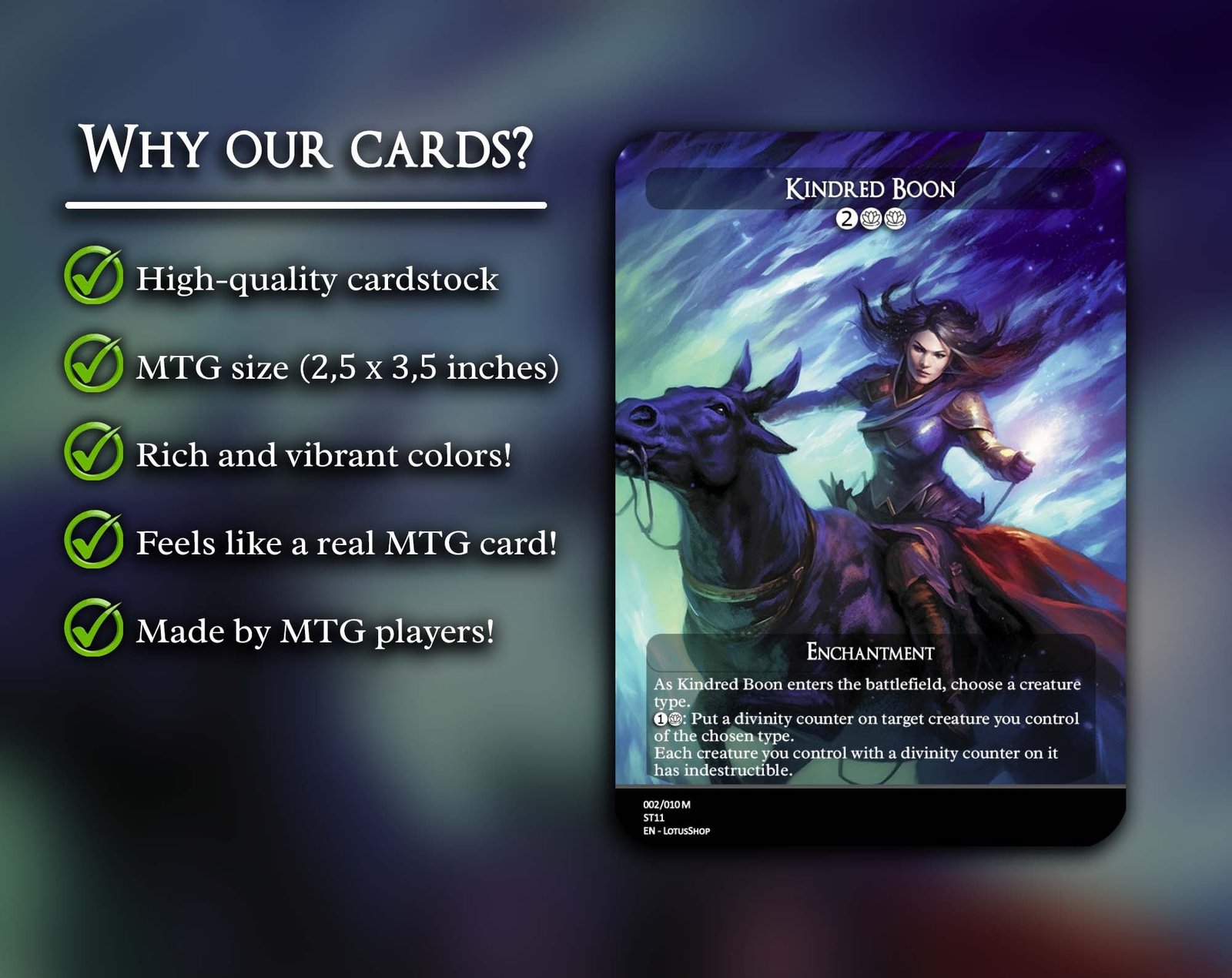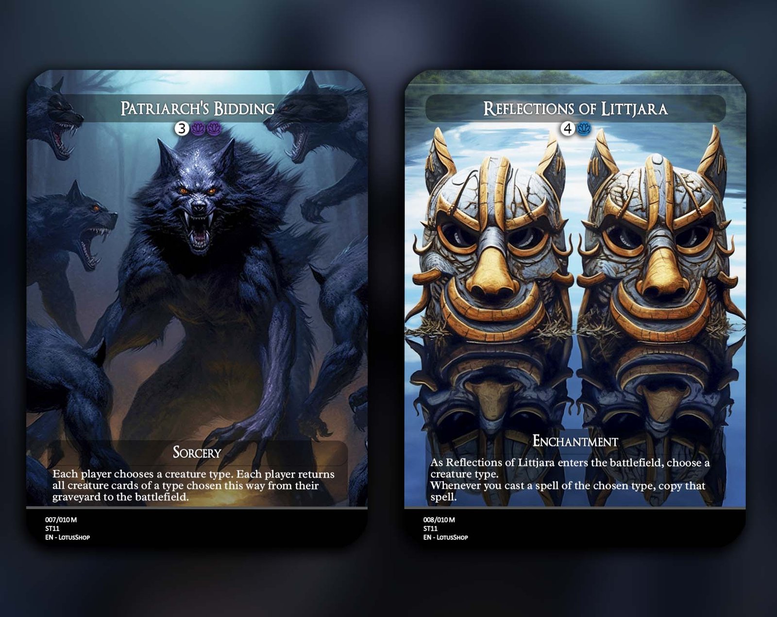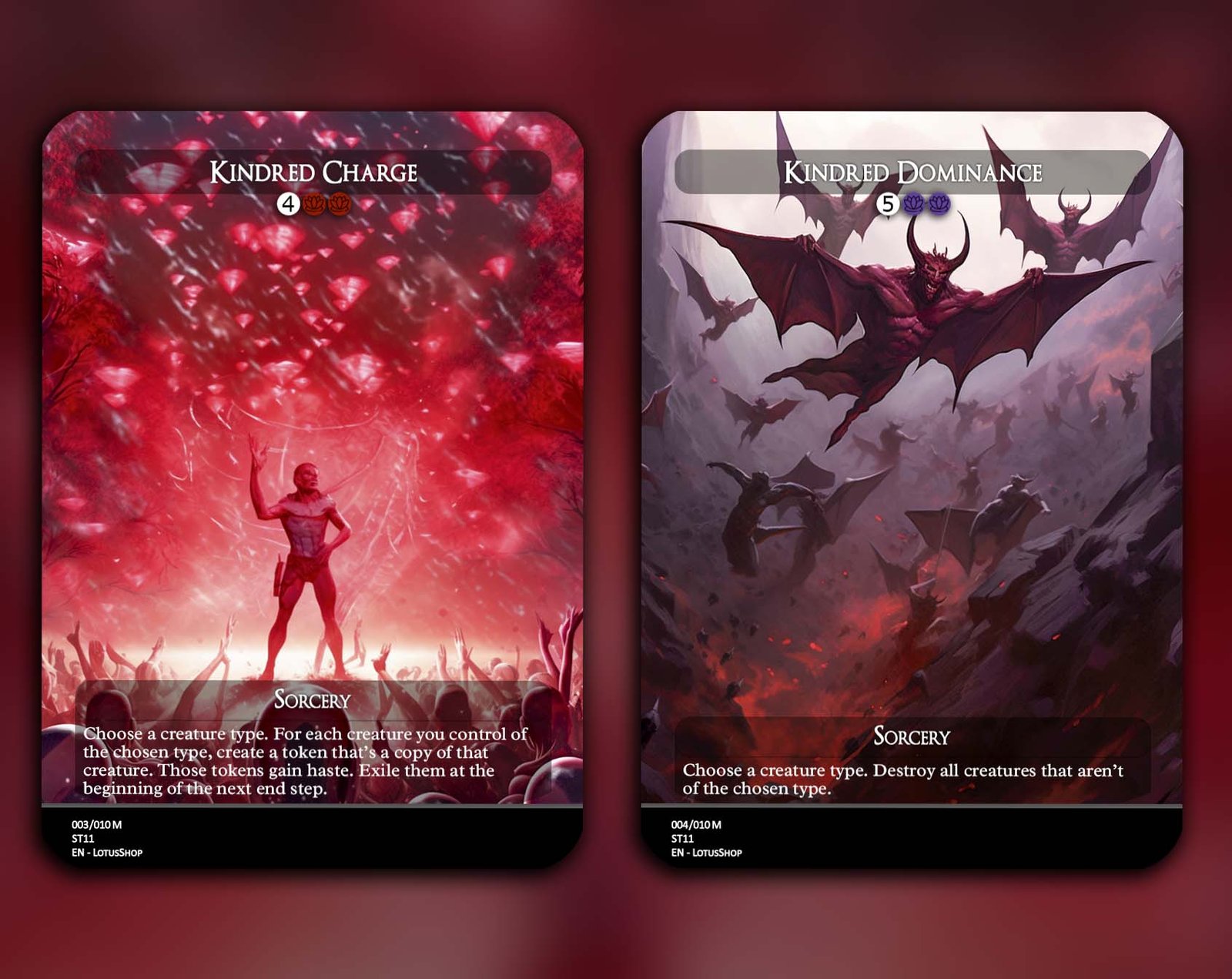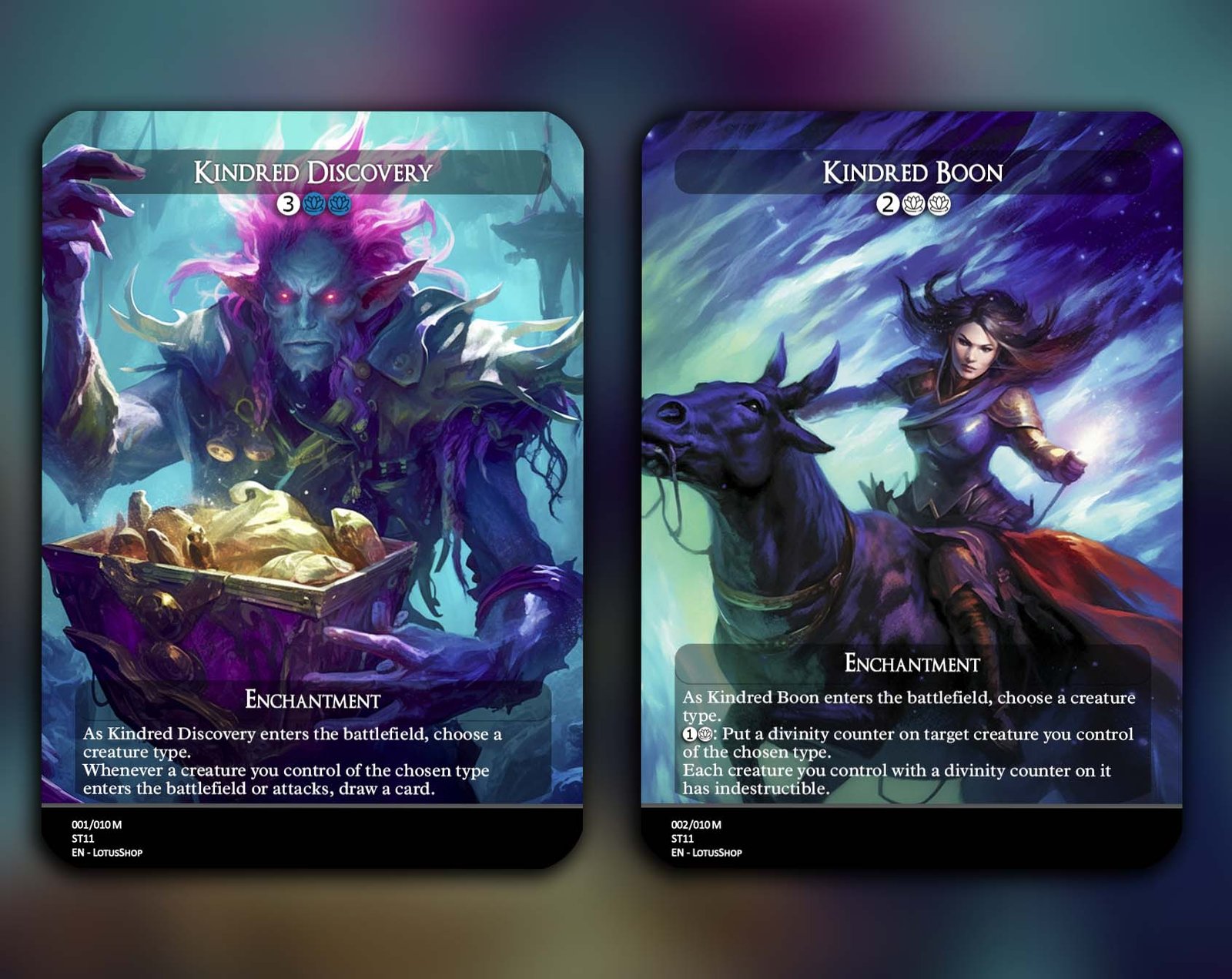 This 12-card set features the most iconic tribal support cards ever printed, perfect for powering up any creature-type focused Commander deck. From the Kindred cycle (Discovery, Boon, Charge, Dominance, Summons) to classic enablers like Patriarch’s Bidding and Descendants’ Fury, this set ensures your tribe of choice stays strong. Urza’s Incubator and Vanquisher’s Banner provide cost reduction and card draw, while Reflections of Littjara doubles your creatures. The mana base is covered with Secluded Courtyard and Unclaimed Territory, staples for smooth tribal casting.